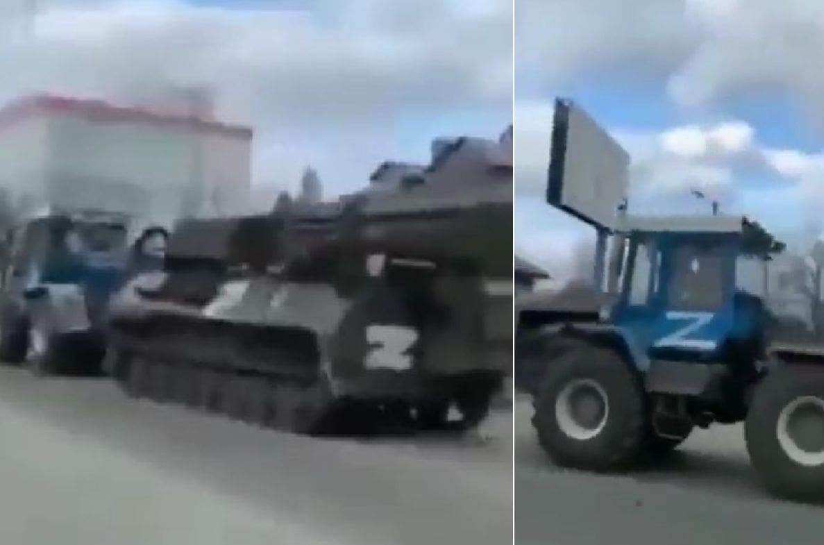 Zatim su se na Twitteru počele pojavljivati snimke u kojima se tvrdi da zapravo Rusi svoje tenkove vuku traktorima, budući da je snimljen sličan traktor sa slovom Z na sebi.