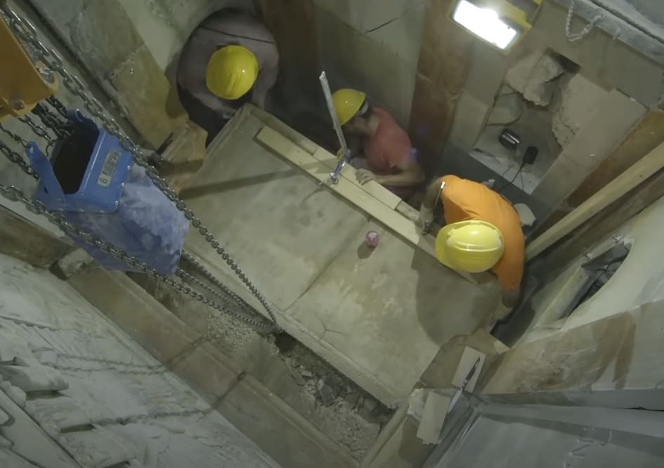 Dijelu povijesnih radova svjedočio je fotograf agencije AFP i snimio fotografije mjesta na kojem se, po vjerovanju, nalazi stijena ispod koje je je položeno Isusovo tijelo 33. godine. Mramorna ploča koja prekriva grob pomaknuta je bila na tri dana zbog obnove i arheološke analize. To je bilo prvi put da je mramorna ploča pomaknuta od najmanje 1810., kada su provedeni zadnji konzervatorski radovi zbog požara u bazilici, a možda i ranije, rekao je otac Samuel Aghoyan iz Armenske Crkve, jedne od konfesija koja upravlja bazilikom.