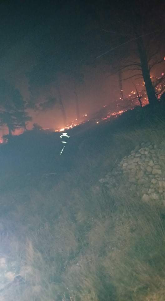 Bura ni ovu noć ne jenjava te ima olujne udare što itekako otežava gašenje vatrogascima. Iako se u prvom dijelu večeri činilo da je vatra stavljena pod kontrolu, očito su novi naleti bure rasplamsali požar i otežali situaciju na terenu.
