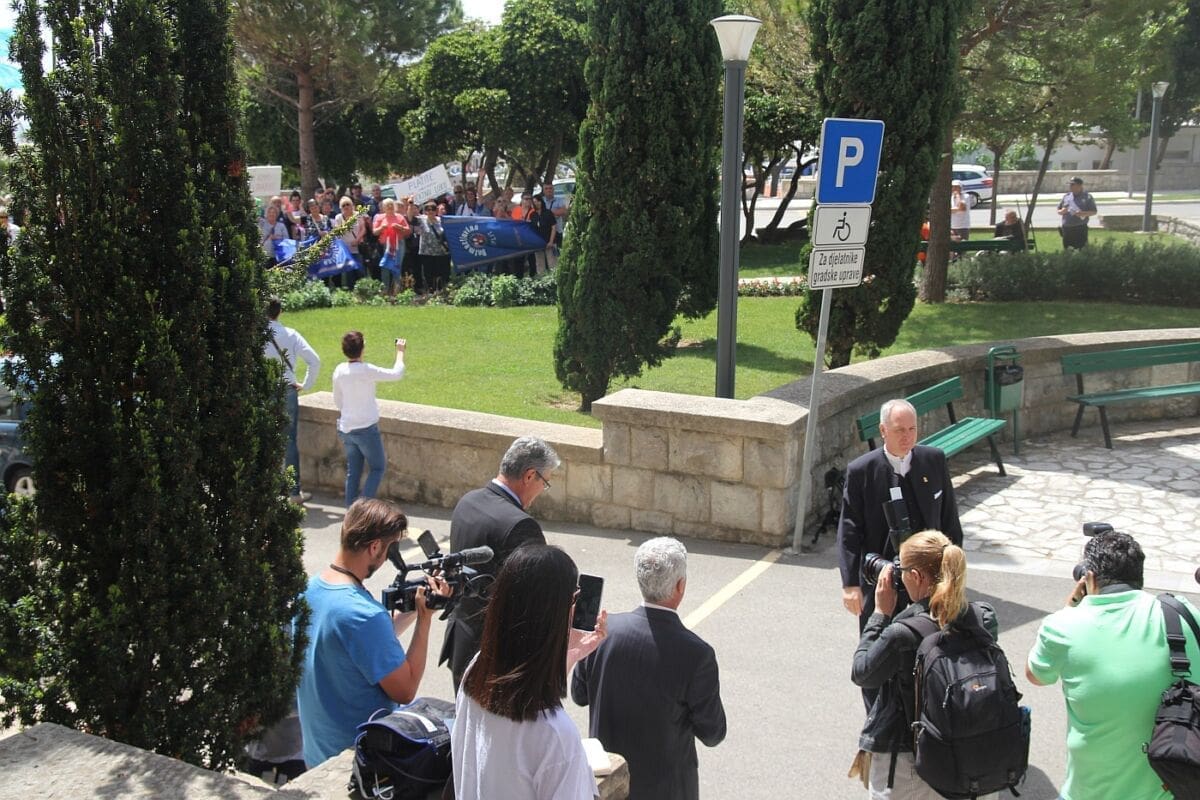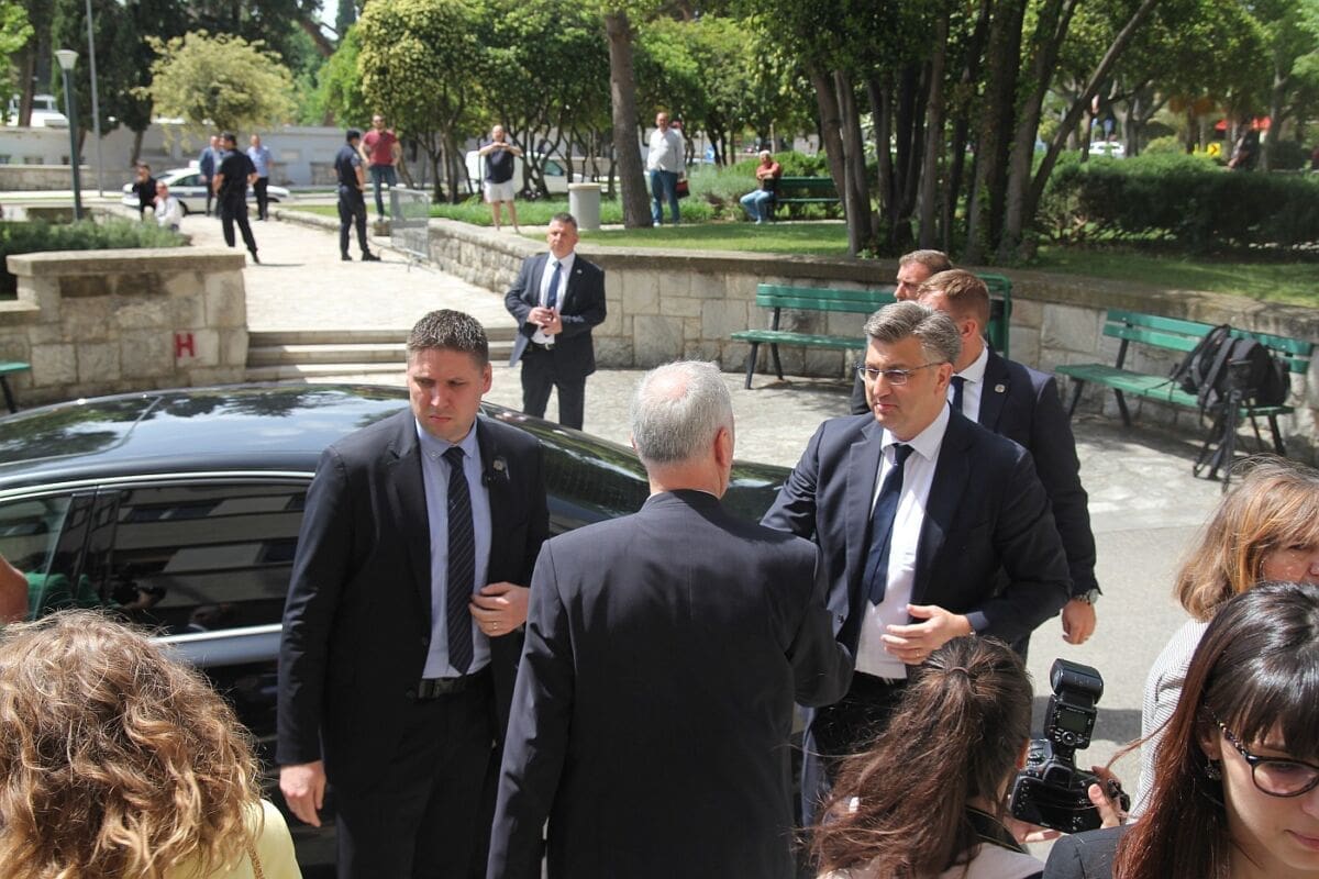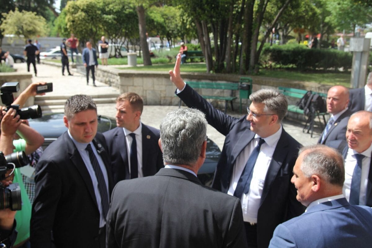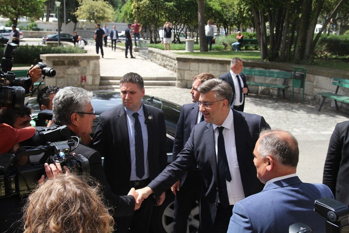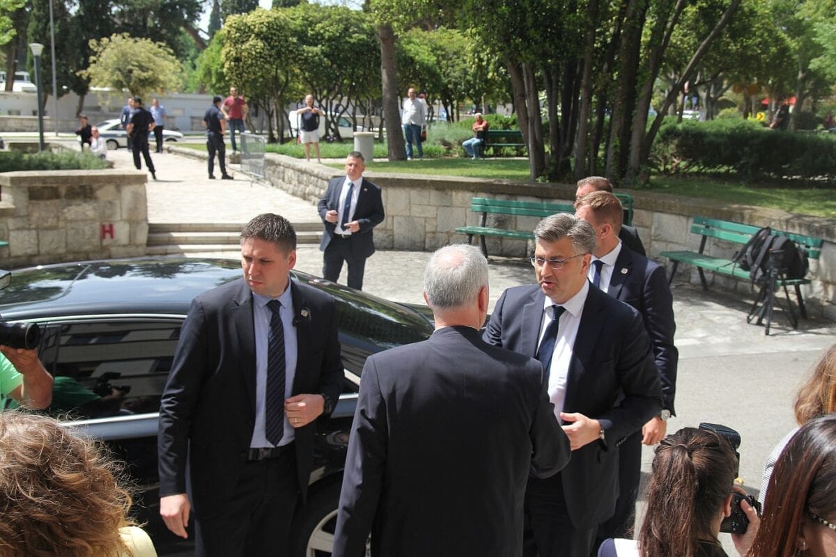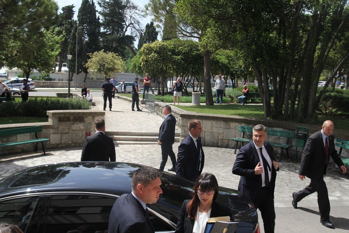 Vladu je pred Banovinom dočekao dvostruki prosvjed. Prosvjedovalo je nekoliko desetaka bivših radnika Dalmacijavina, a na njihovo dozivanje premijer im je mahnuo. Također su prosvjedovali stanari nekadašnjeg hotela Brodosplita u Vukovarskoj ulici koji strahuju za svoju budućnost nakon što je Vlada najavila da će hotel predati u vlasništvo grada Splita.
