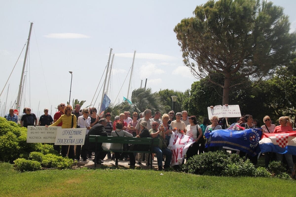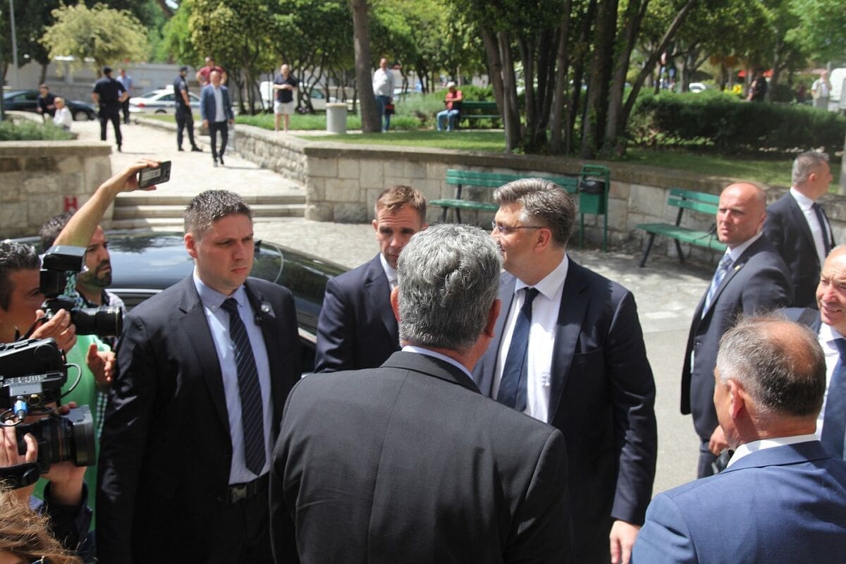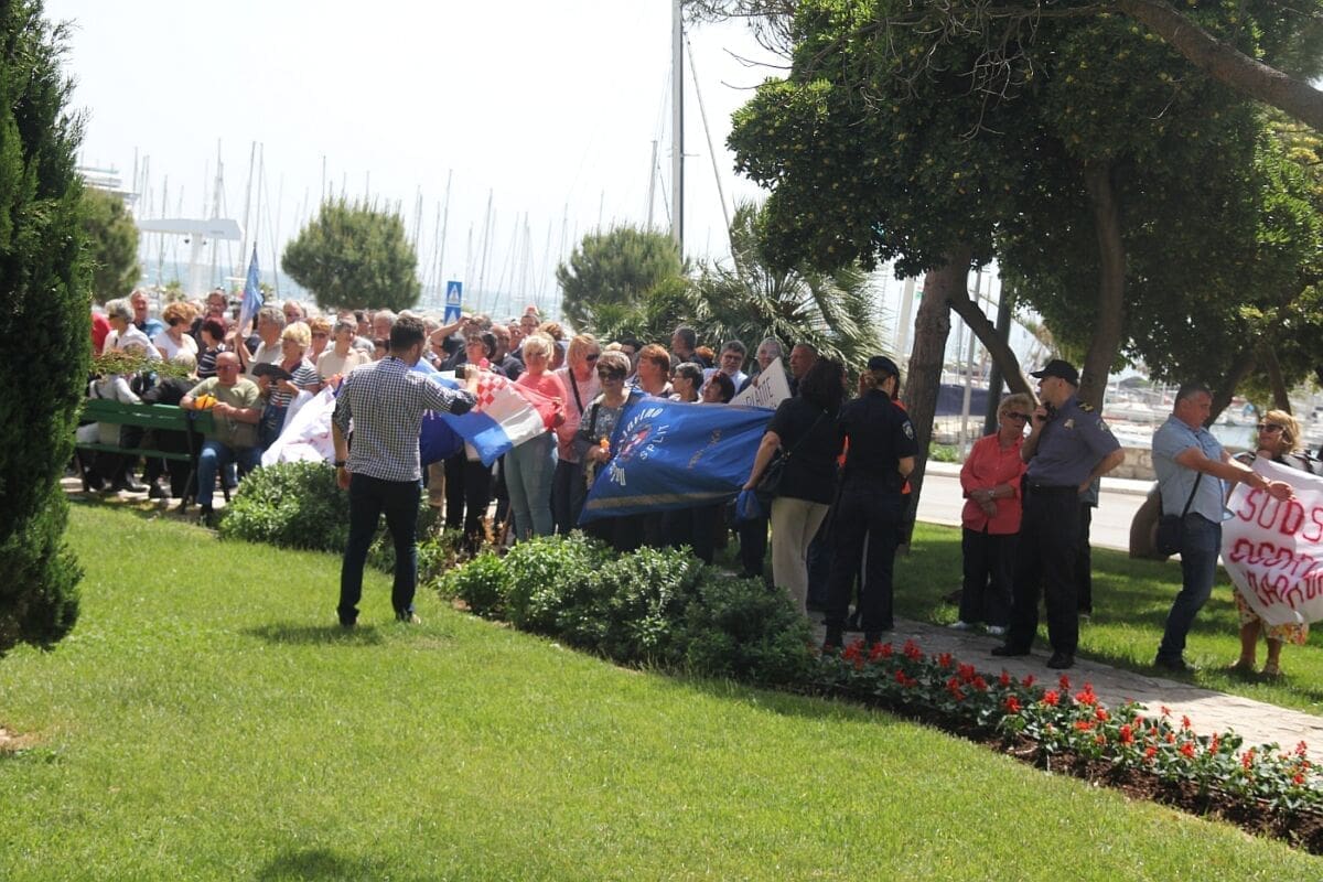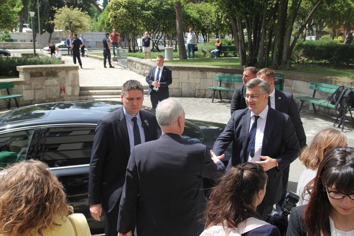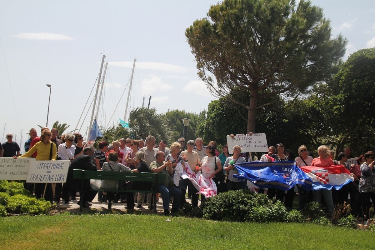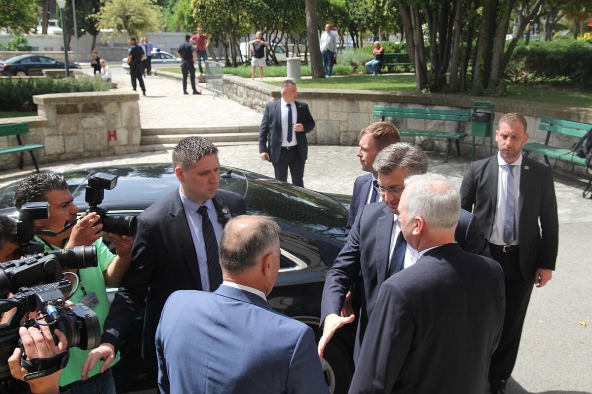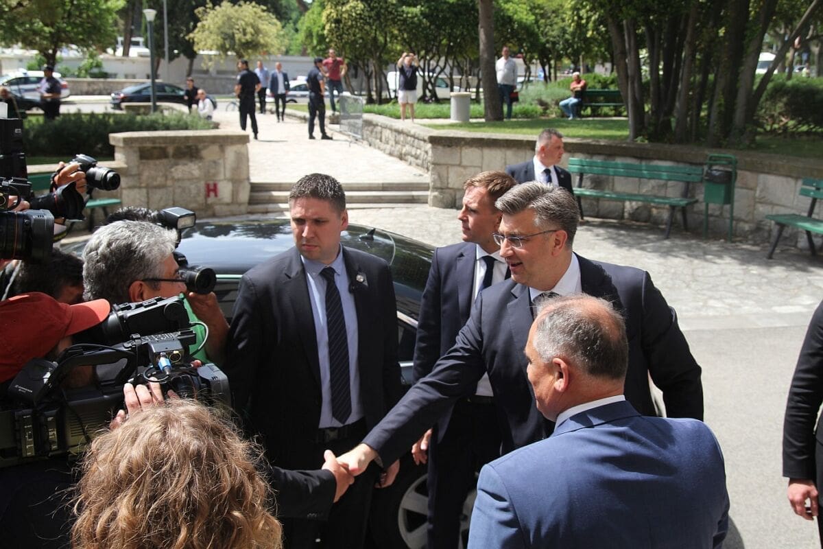 Vladu je pred Banovinom dočekao dvostruki prosvjed. Prosvjedovalo je nekoliko desetaka bivših radnika Dalmacijavina, a na njihovo dozivanje premijer im je mahnuo. Također su prosvjedovali stanari nekadašnjeg hotela Brodosplita u Vukovarskoj ulici koji strahuju za svoju budućnost nakon što je Vlada najavila da će hotel predati u vlasništvo grada Splita.