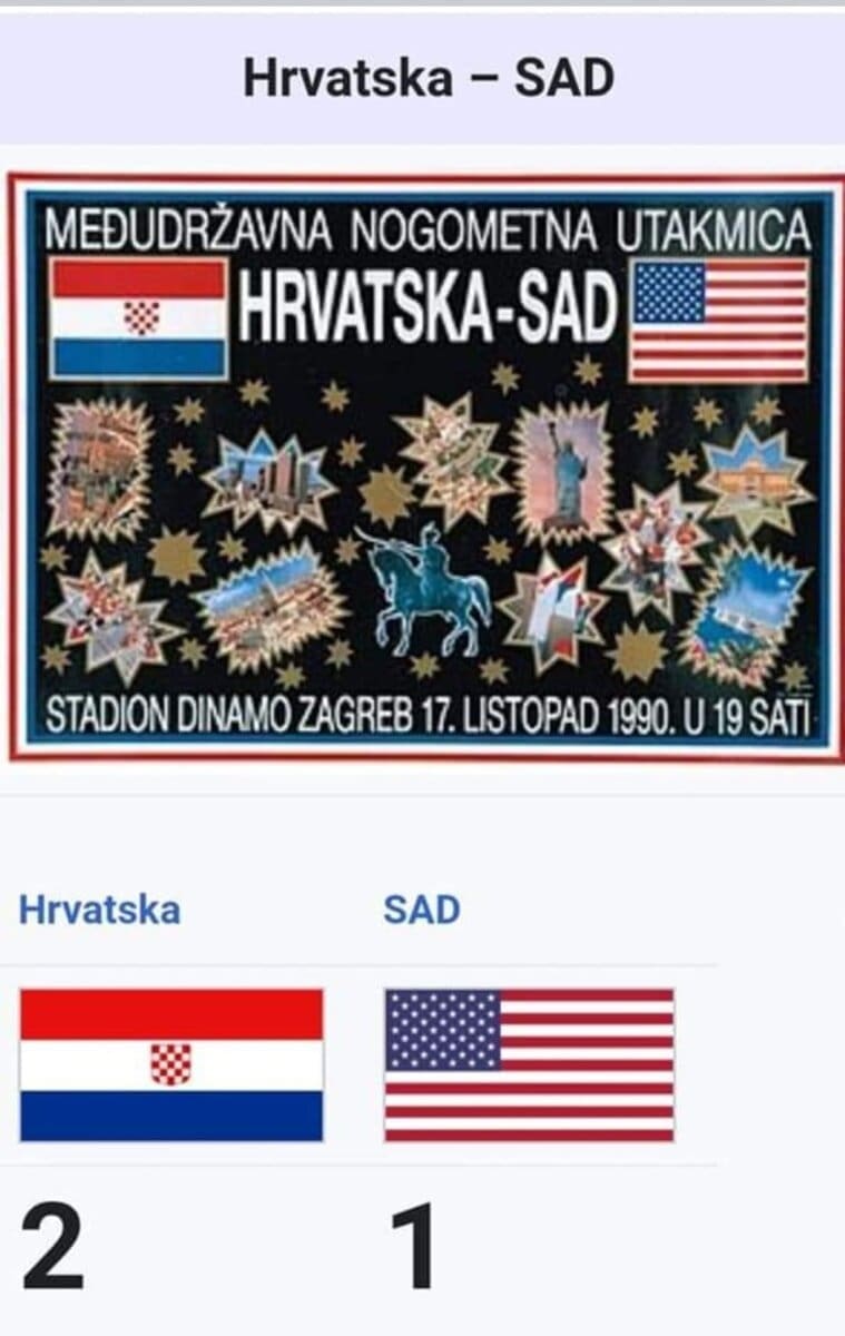 Na današnji dan, 17. listopada 1990. godine, na prepunom Maksimirskom stadionu hrvatska nogometna reprezentacija odigrala je svoju prvu utakmicu u novijoj povijesti, čime je najavila bogate uspjehe Vatrenih i hrvatskog nogometa. Hrvatska je tada pobijedila Sjedinjene Američke Države rezultatom 2:1. Povijesni prvi pogodak postigao je Aljoša Asanović, poznat kao "vatreni lakat", u 29. minuti. Samo četiri minute kasnije, za povećanje vodstva na 2:0, zabio je Ivan Cvjetković. Pred sam kraj utakmice, američki igrač Dayak smanjio je rezultat na konačnih 2:1.