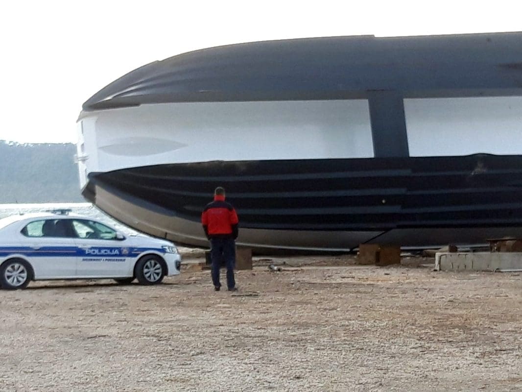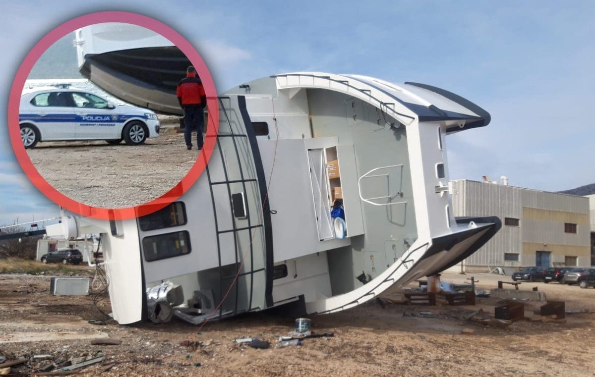 VIDEO Prva "žrtva" bure u Kaštelima: Prevrnuo se brod u izgradnji, stigla policija