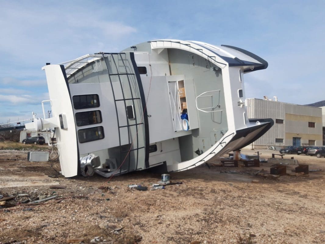 Kako doznajemo, olujni udari bure srušili su jedan brod u izgradnji koji se nalazio na suhom na području dvorišta nekadašnjeg Jugovinila u Kaštel Sućurcu.