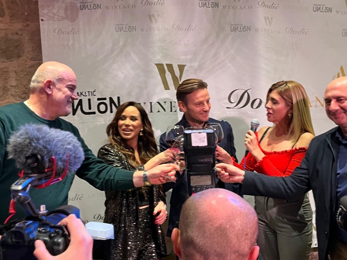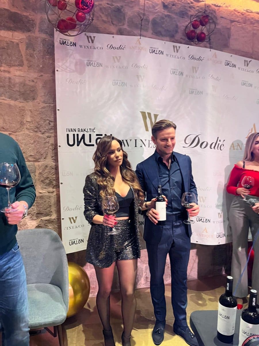 Rakitić je na promociju vina stigao sa suprugom Raquel Mauri i kumom Markom Bralićem.