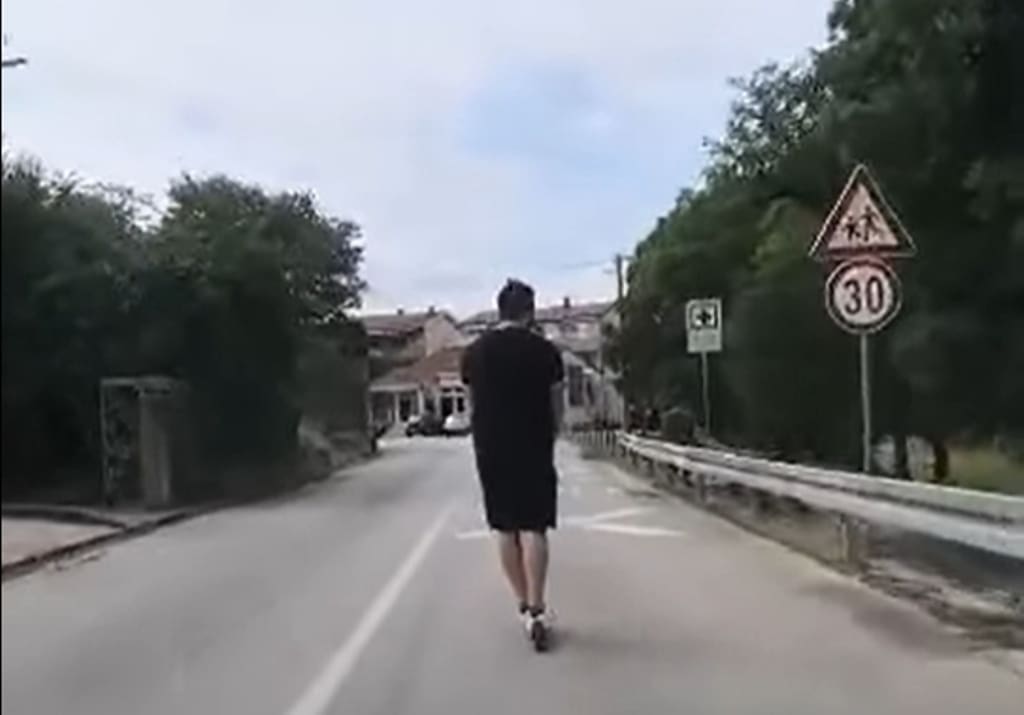 Na videozapisu objavljenom na popularnoj Facebook stranici 'Prometne zgode i nezgode' vidi se muškarac koji vozi električni romobil sredinom prometne trake.