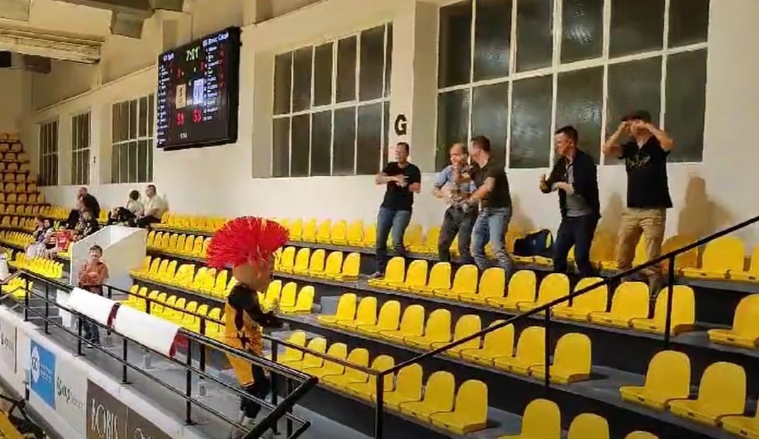Na tribinama je vladalo pravo navijačko ludilo. Žutko je ekipu u posljednjem redu Gripa digao na noge i 'kao jedan' su izveli koreografiju na pjesmu 'Stoji na kantunu' od Đavoli.