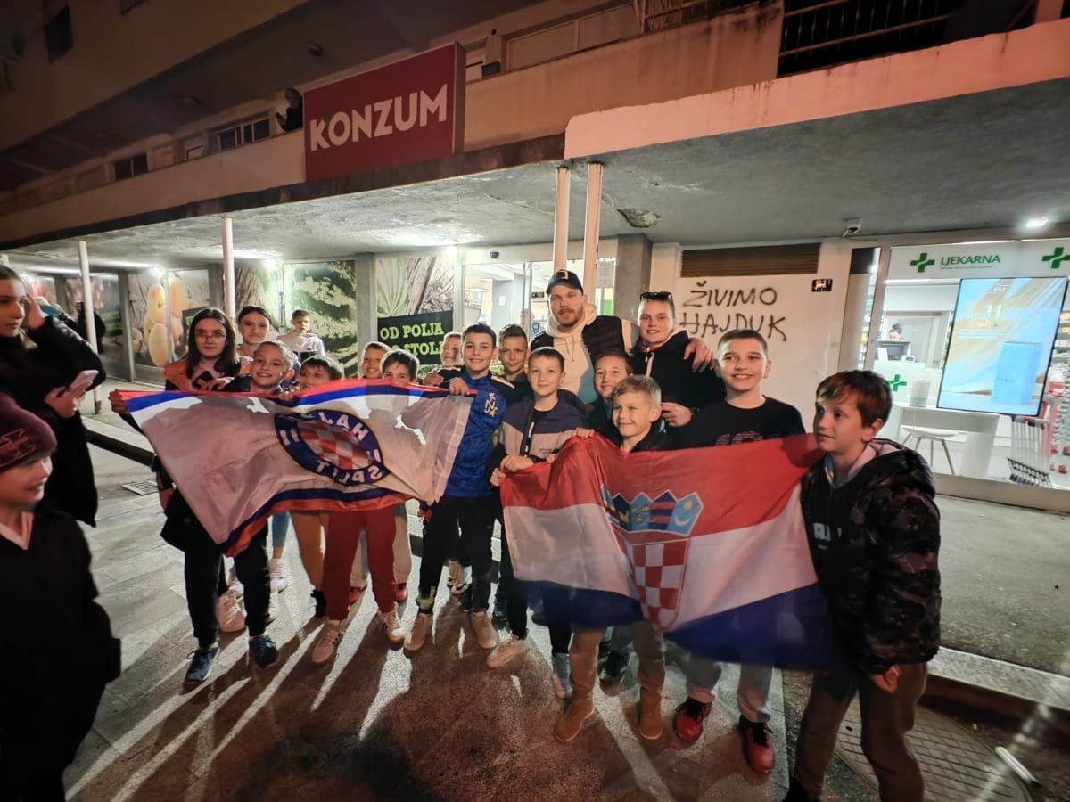 Dočekalo ga je petstotinjak Splićana na čelu s bratom, prijateljima i starim torcidašima. Bio je to i zlatni Zvonimir Butić sa Spinuta.