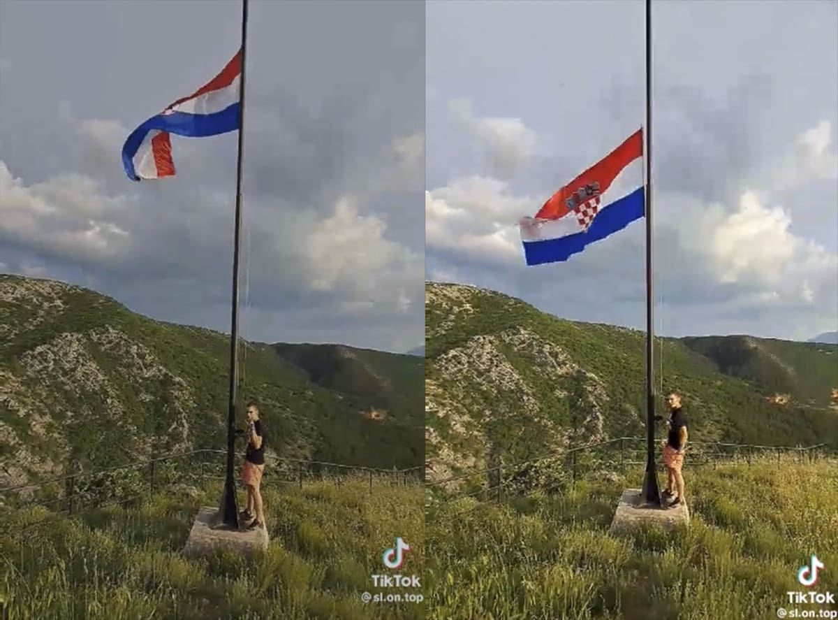 Društvenim mrežama kruži snimka mladića koji skida hrvatsku zastavu s jarbola iznad slapa Krčić kod Knina.