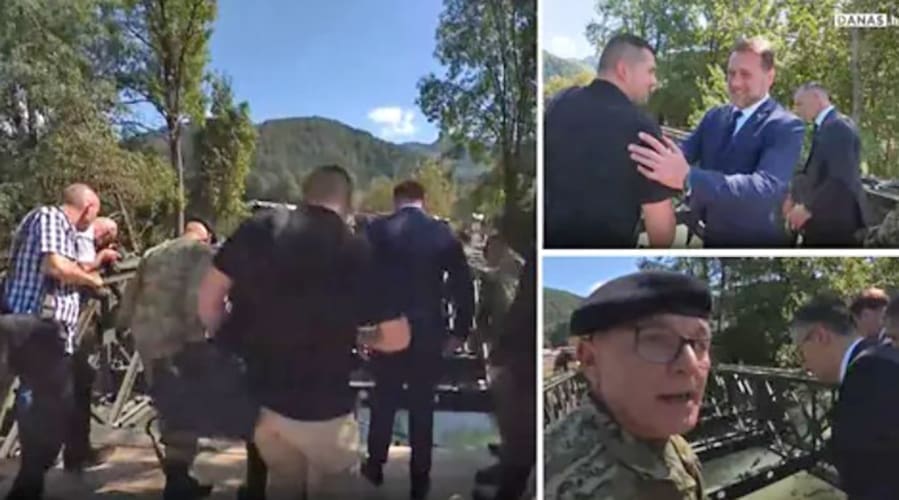 Tijekom posjete ministra obrane Marija Banožića pripadnicima Hrvatske vojske koji su angažirani na postavljanju lansirnog mosta ‘Bailey M-1‘, na rijeci Dreti u mjestu Lačja Vas u Sloveniji, službeni MORH-ov snimatelj doživio je prilično neugodnu nezgodu, piše Danas.hr.