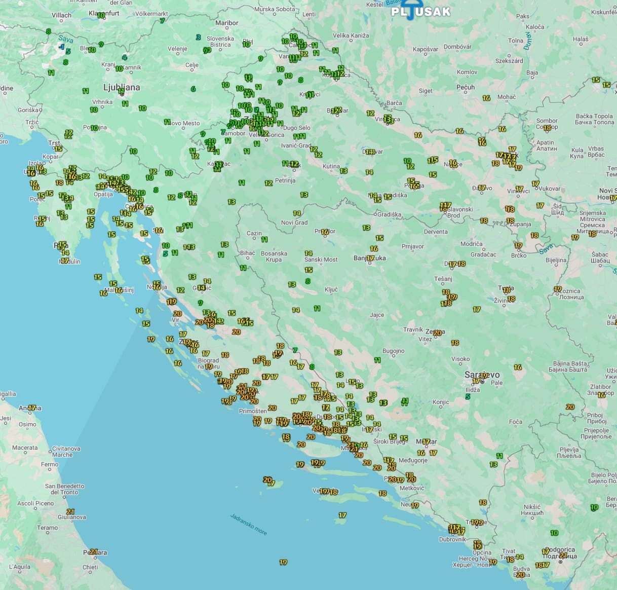 Do 20 sati značajnije količine kiše pale su još ponegdje u unutrašnjosti, na sjevernom Jadranu, ali i na sjeveru Dalmacije. Južnije od Šibenika kiše je bilo malo ili nimalo.