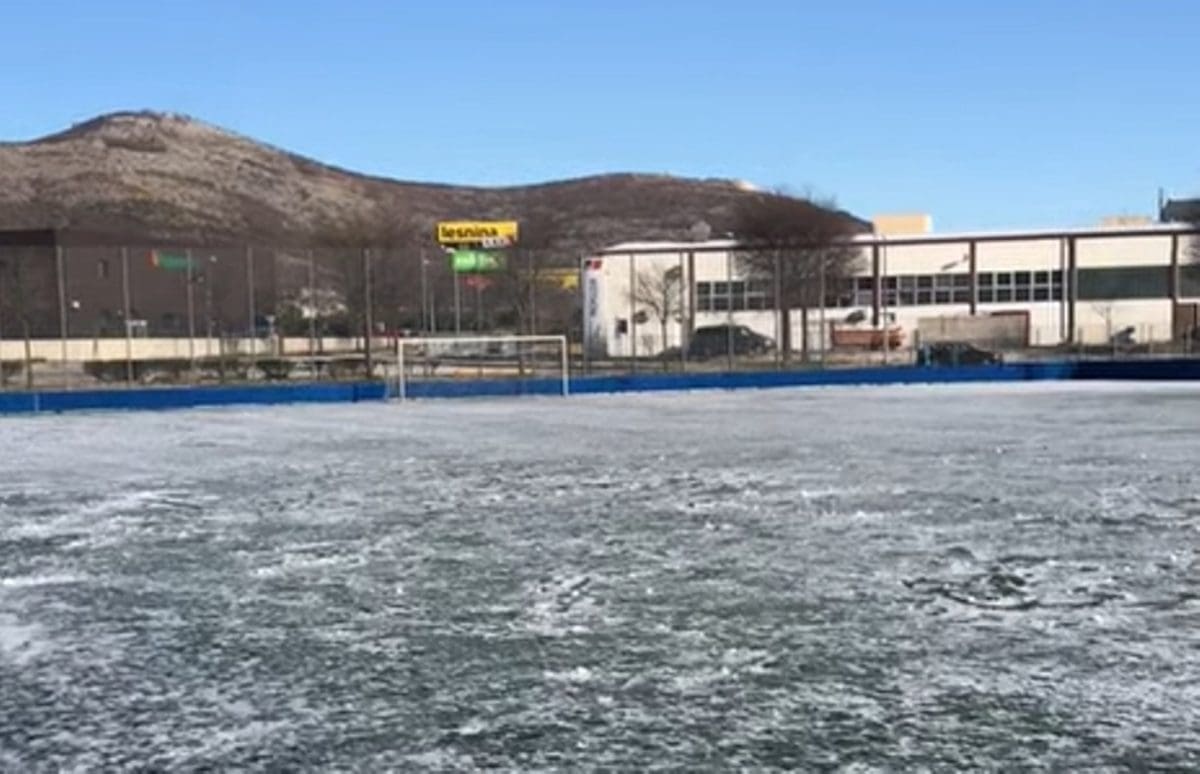 Teren je u potpunosti prekriven slojem leda i snijega, a utakmica je odgođena za neke bolje vremenske prilike.