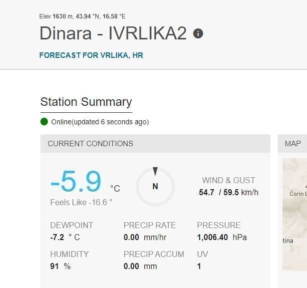 Na Dinari vlada vijavica uz temperaturu od -7°C i osjet hladnoće do -17 stupnjeva!
