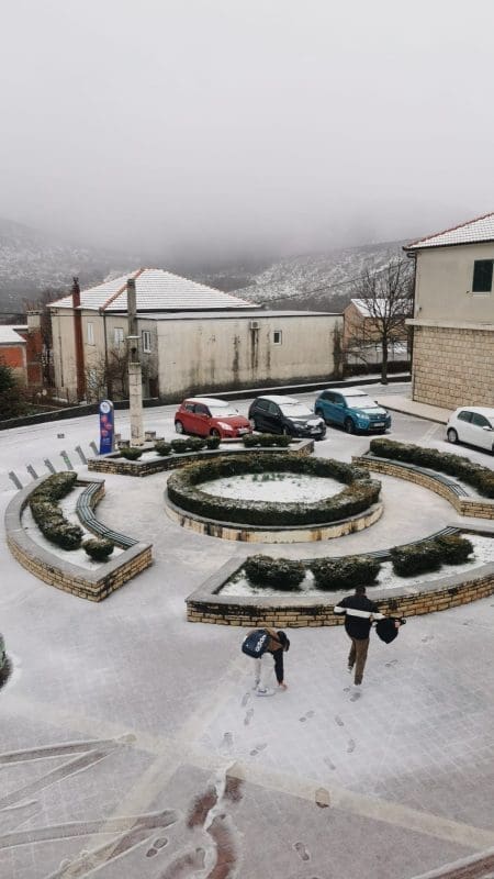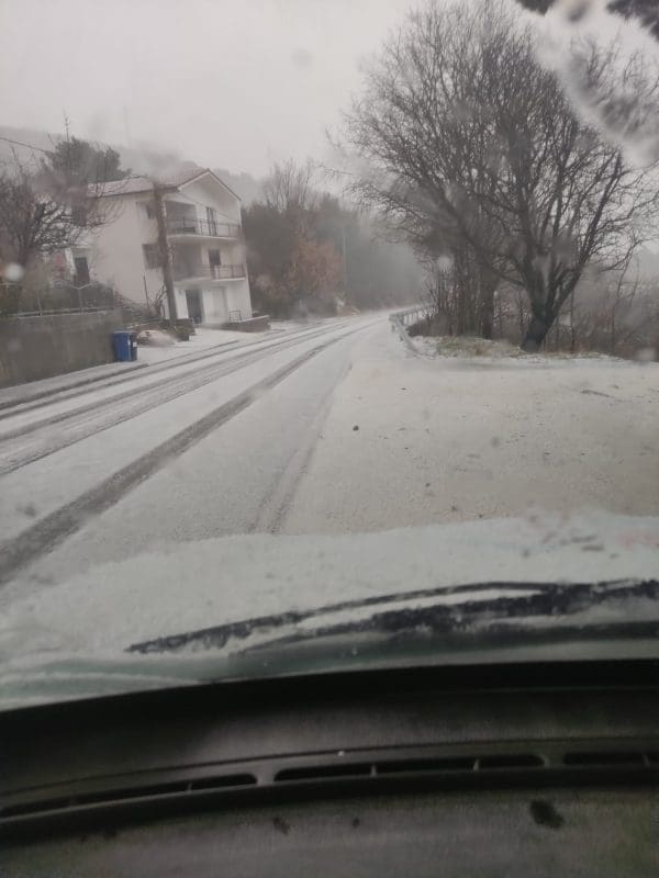 Kiša je u planinama prešla u snijeg, no snijeg je počeo padati u dijelovima Dalmatinske zagore, a sasvim se približio Splitu. Naime, snježnih pahulja ima sve do 200 metara nadmorske visine i pada čak u Donjem Sitnom, ali i na brzoj cesti kod Klisa.