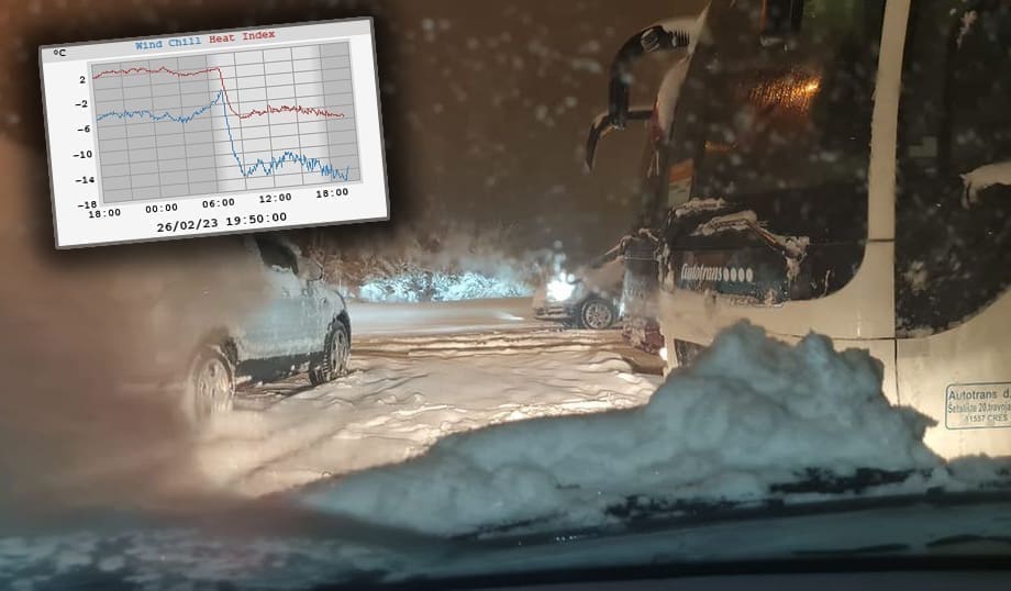 Očekivano, najviše je zahladilo u planinama. Sinjal na Dinari je najhladniji u Hrvatskoj s -9°C. Velika Duvjakuša na Dinari mjeri -8°C uz buru i osjet hladnoće do -18°C. Na Velikom Kablu, najviše vrhu Mosora, temperatura je -3°C, a snijeg pada do oko 900 metara nadmorske visine. Na Biokovu snijeg pada dosta nisko, a zabijelila su se i Gornja Brela.