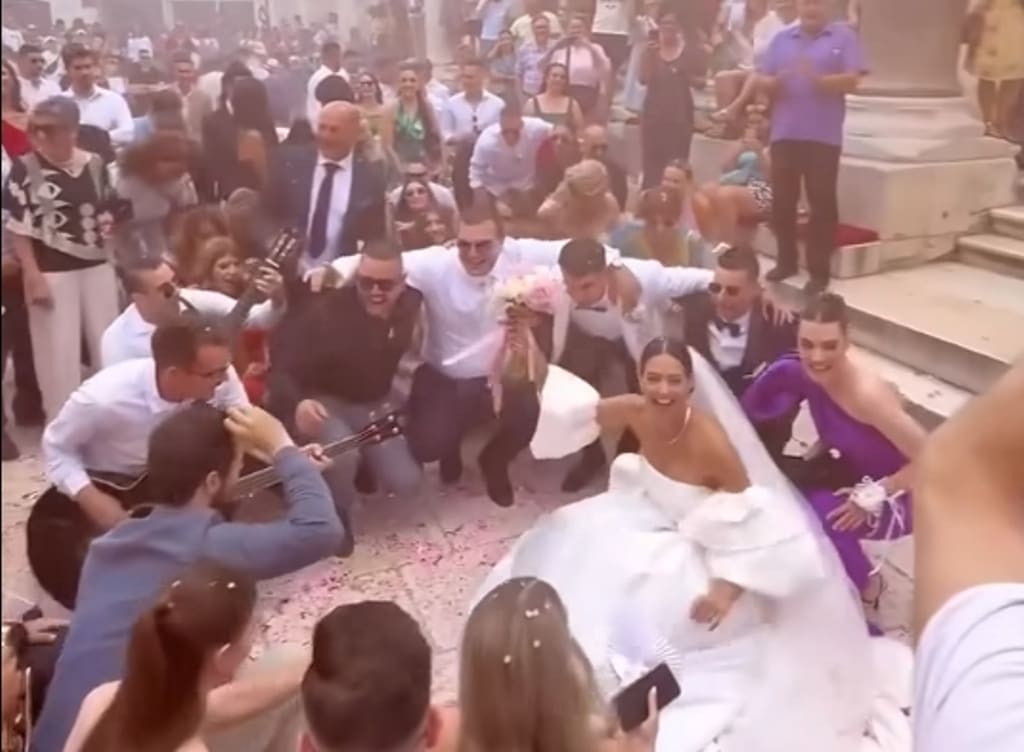 Na stranici "Niko kao Hajduk iz Splita 1950" objavljen je video slavlja nakon svadbe u katedrali sv. Duje, koji je ubrzo privukao veliku pažnju i skupio preko 7 tisuća pozitivnih reakcija. Na snimci koja je postala hit uzvanici, zajedno s mladencima, na splitskom Peristilu pjevaju pjesmu "Tamo gdje sam rođen" legendarnog Tomislava Ivčića.