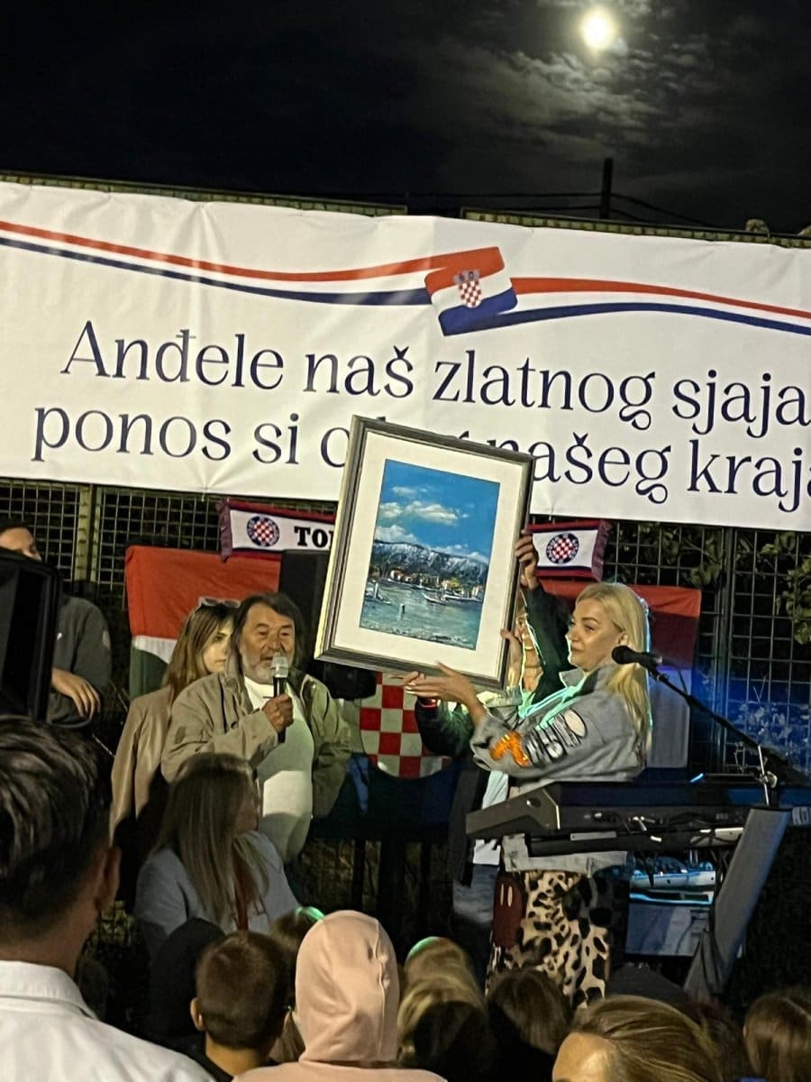 Na kraju je uslijedio vatromet i prikaz slike Peruna, gledanog s mora, djelo umjetnika Duška Aničića. Torcida Srinjine uručila je Anđeli i Luki šal Hajduka za sjećanje na ovaj, za sve, veliki dan.
