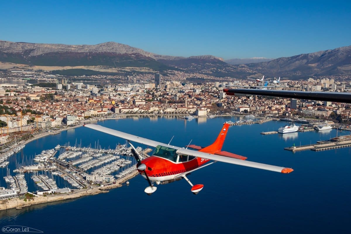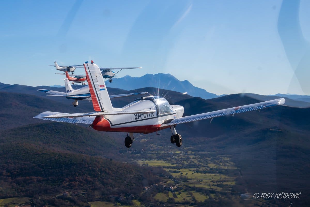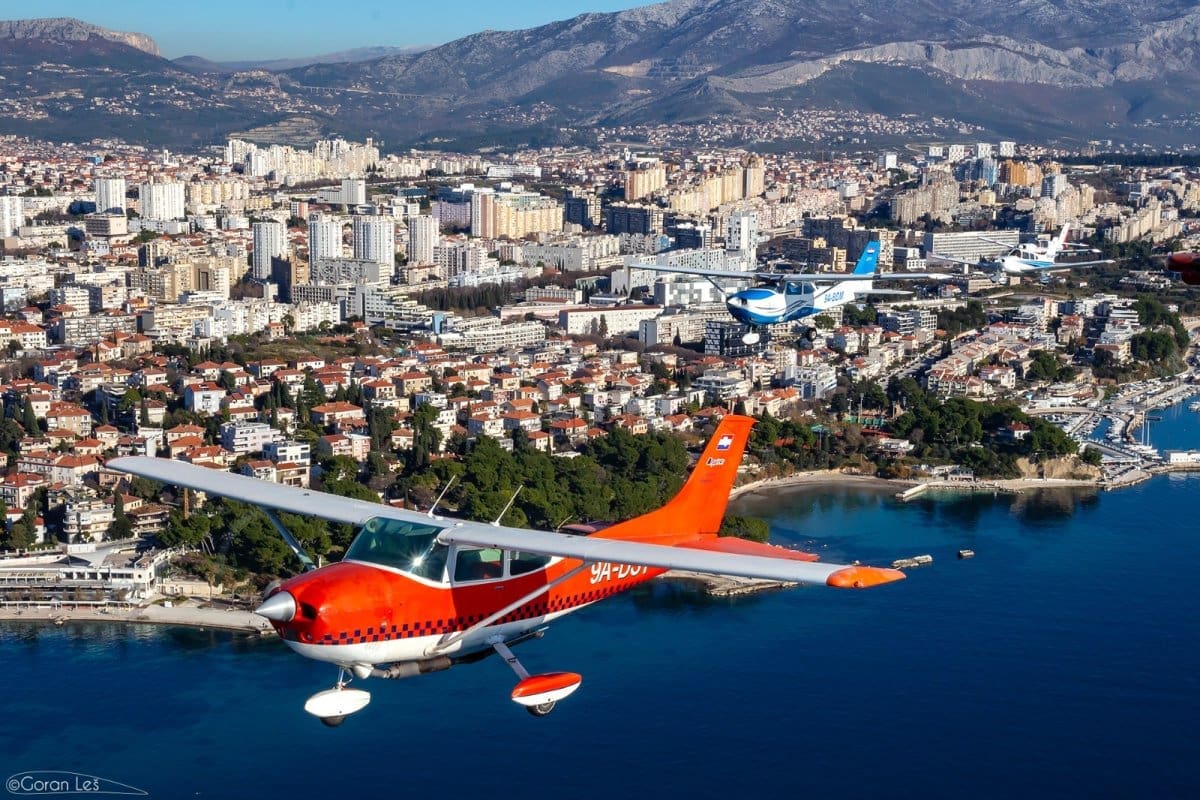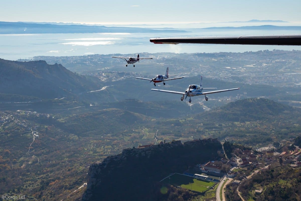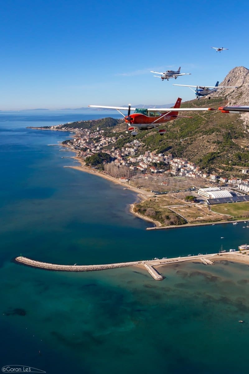 Piloti Split Aira sa dva aviona, S.T.A. Flight School s jednim, Aeroklub Sinj sa dva i Aeroklub Split s jednim avionom u formaciji su poletjeli sa Sinjskog aerodroma Piket, jedinog u Dalmatinskoj zagori, da bi let nastavili kanjonom Cetine prema Omišu i Ruskamenu gdje su nadletjeli mjesto slavlja. Formaciji se priključio i legendarni školsko-borbeni zrakoplov Soko G-2 Galeb koji je nadletio Brački i Splitski aerodrom.