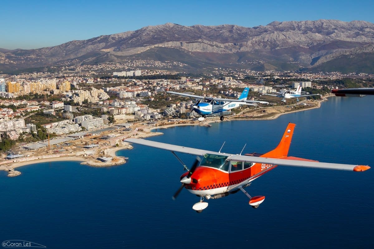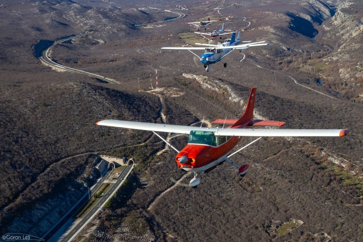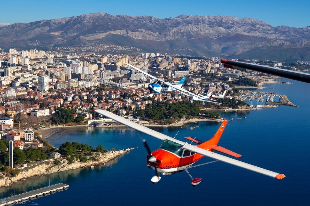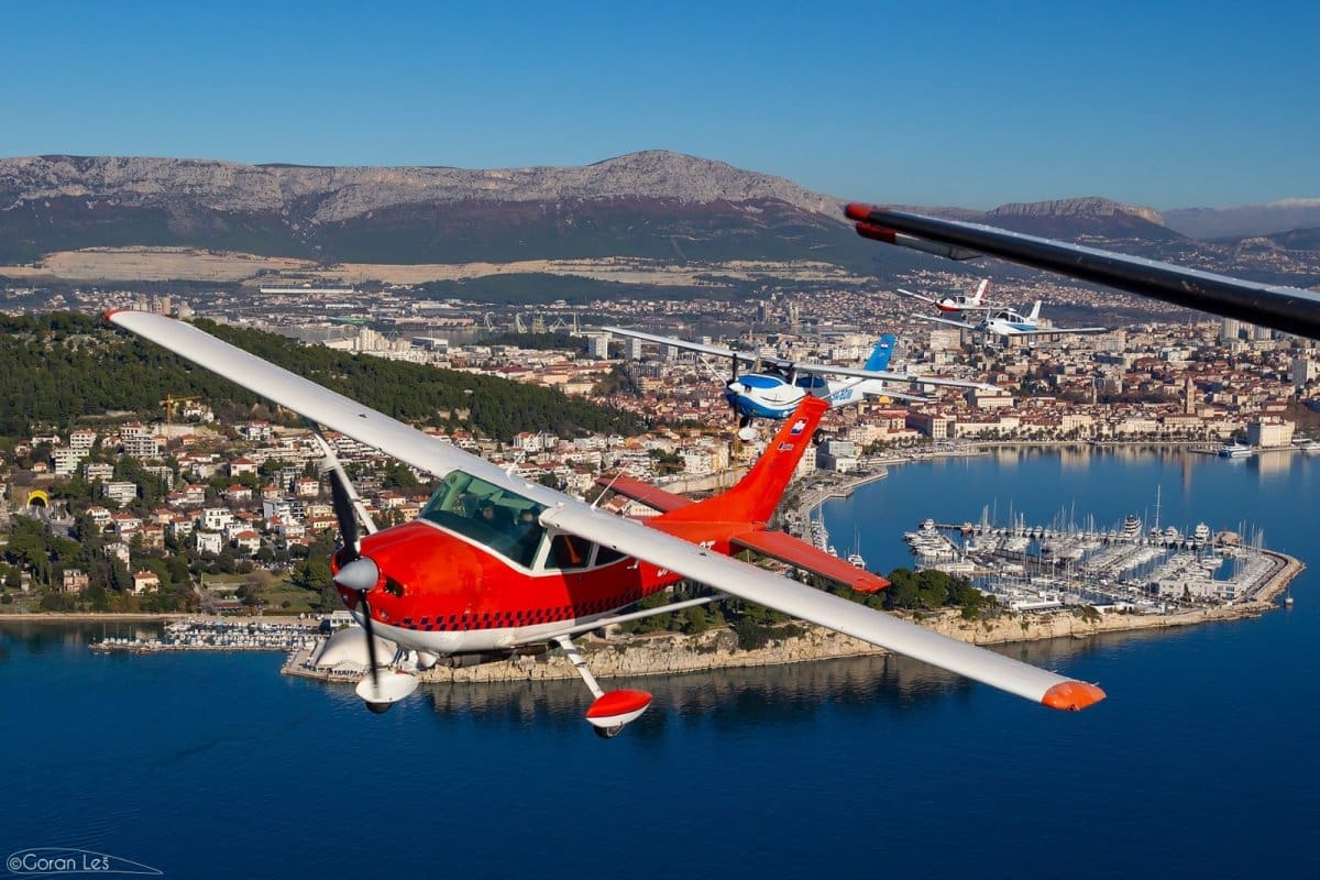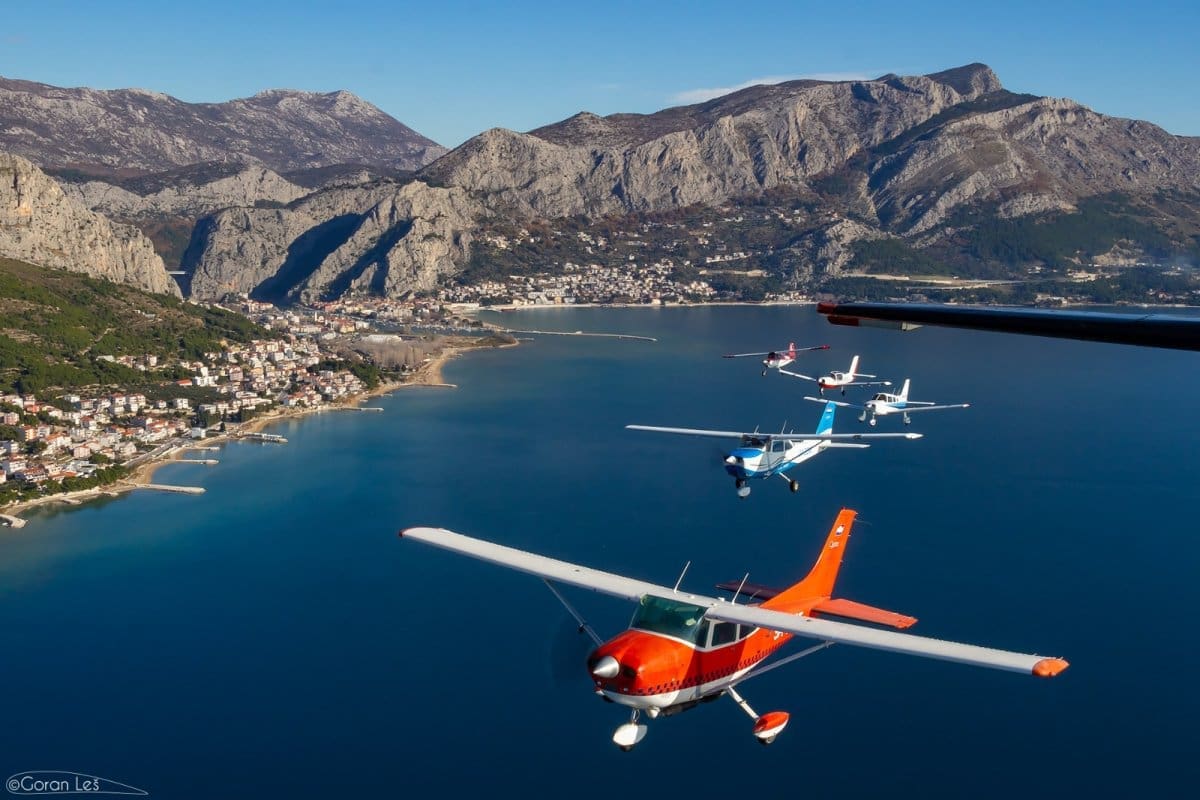 Piloti Split Aira sa dva aviona, S.T.A. Flight School s jednim, Aeroklub Sinj sa dva i Aeroklub Split s jednim avionom u formaciji su poletjeli sa Sinjskog aerodroma Piket, jedinog u Dalmatinskoj zagori, da bi let nastavili kanjonom Cetine prema Omišu i Ruskamenu gdje su nadletjeli mjesto slavlja. Formaciji se priključio i legendarni školsko-borbeni zrakoplov Soko G-2 Galeb koji je nadletio Brački i Splitski aerodrom.