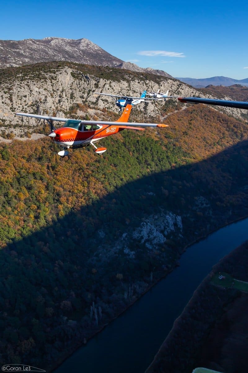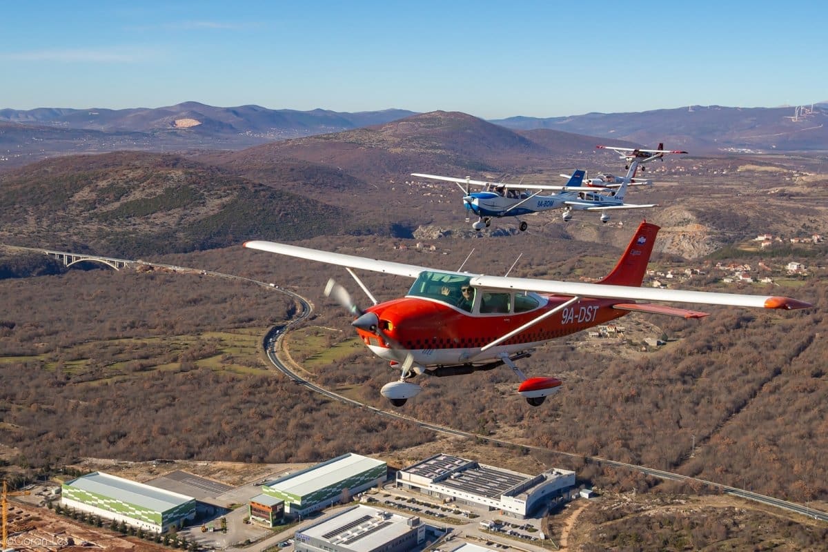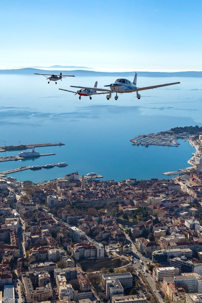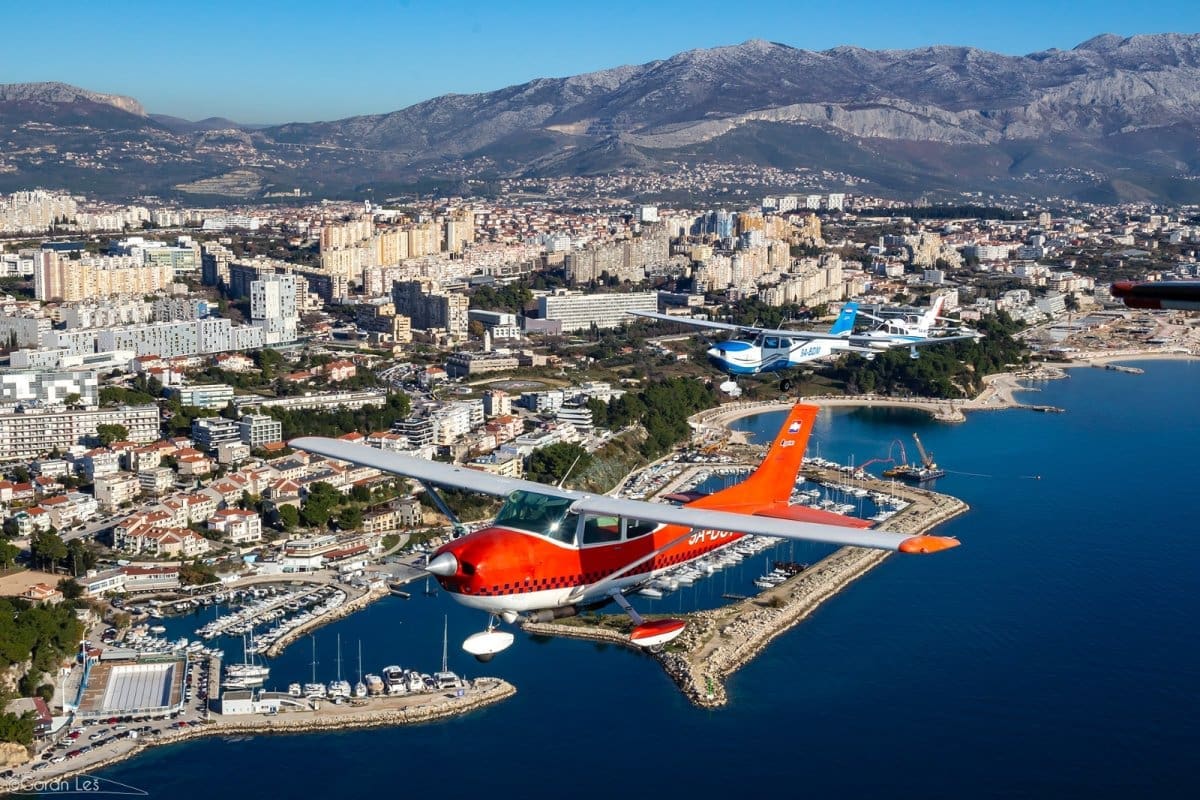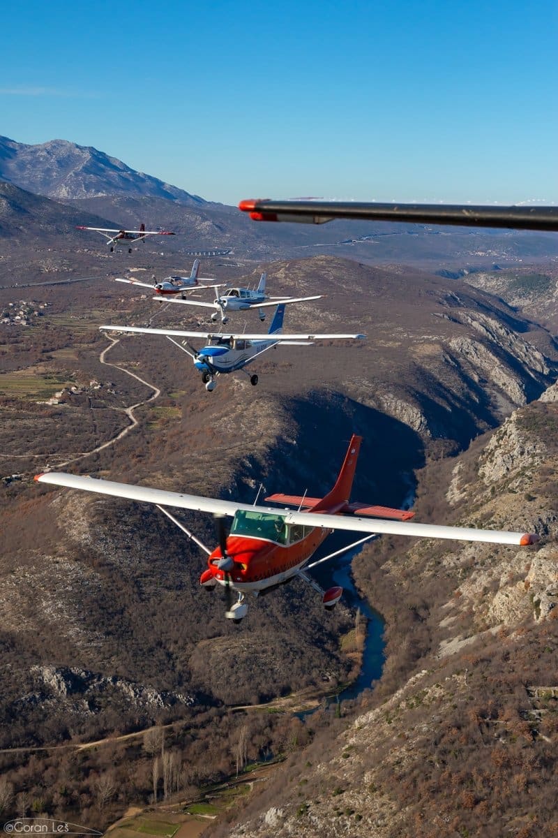 Piloti Split Aira sa dva aviona, S.T.A. Flight School s jednim, Aeroklub Sinj sa dva i Aeroklub Split s jednim avionom u formaciji su poletjeli sa Sinjskog aerodroma Piket, jedinog u Dalmatinskoj zagori, da bi let nastavili kanjonom Cetine prema Omišu i Ruskamenu gdje su nadletjeli mjesto slavlja. Formaciji se priključio i legendarni školsko-borbeni zrakoplov Soko G-2 Galeb koji je nadletio Brački i Splitski aerodrom.