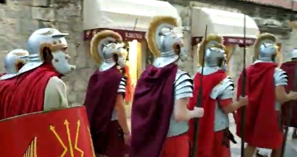 Na gradskim ulicama i trgovima postrojavaju se rimske legije, gradom se čuju zvuci fanfara, bubnjara i rimske glazbe.