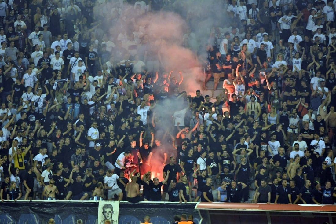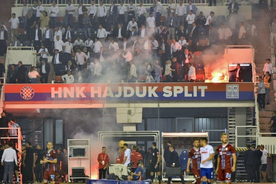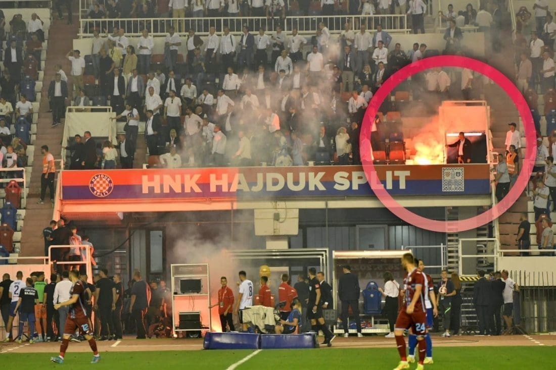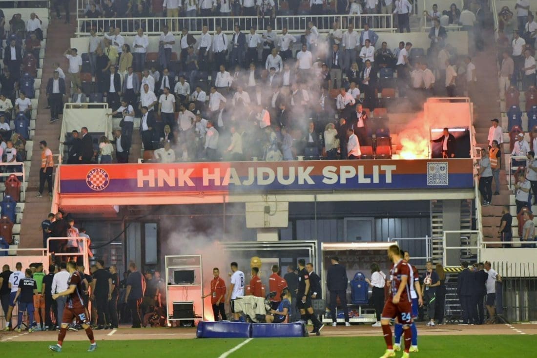Gostujući navijači bili su smješteni na zapadnoj tribini Poljuda, a u 90. minuti susreta nekoliko baklji je doletjelo iz gostujućeg sektora na svečanu ložu u kojoj su sjedili brojni visoki uzvanici.