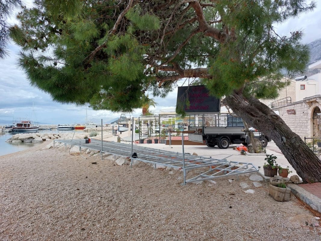 "Kad mislite da ne može gore, može. U samom centru mjesta, niti 50 metara od zgrade Općine Tučepi, od načelnika i komunalnog redara, na pomorskom dobru se postavlja velika željezna konstrukcija za buduću terasu kafića bez ikakvih odobrenja (osim onih "usmenih").