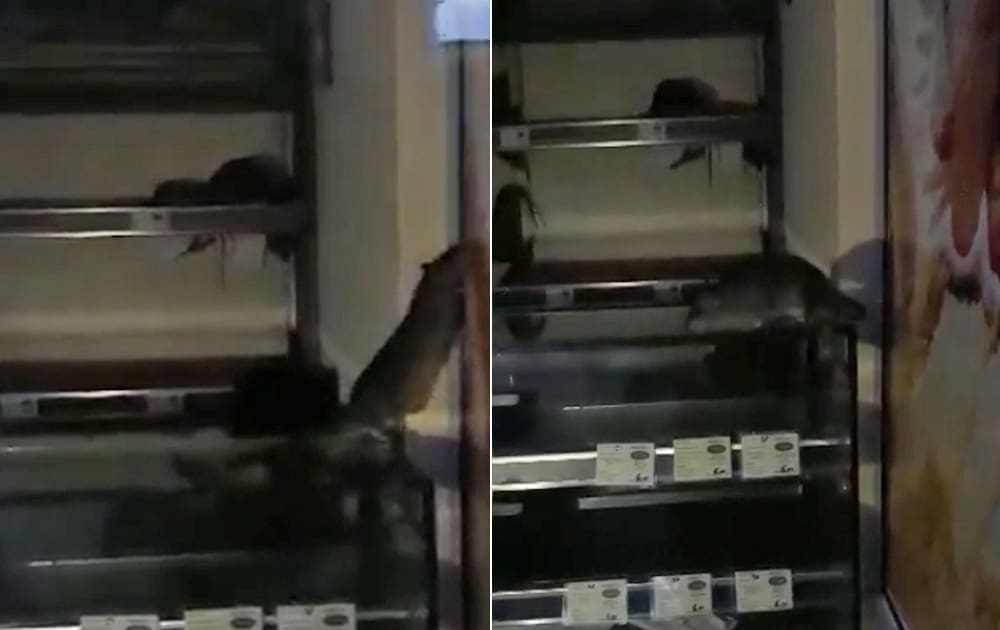 Video je sniman kroz staklo zatvorene pekare, a na njemu su vidljivi veliki štakori kako šetaju po policama na kojima inače stoji kruh.