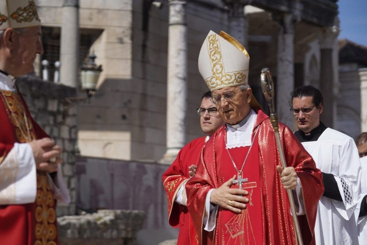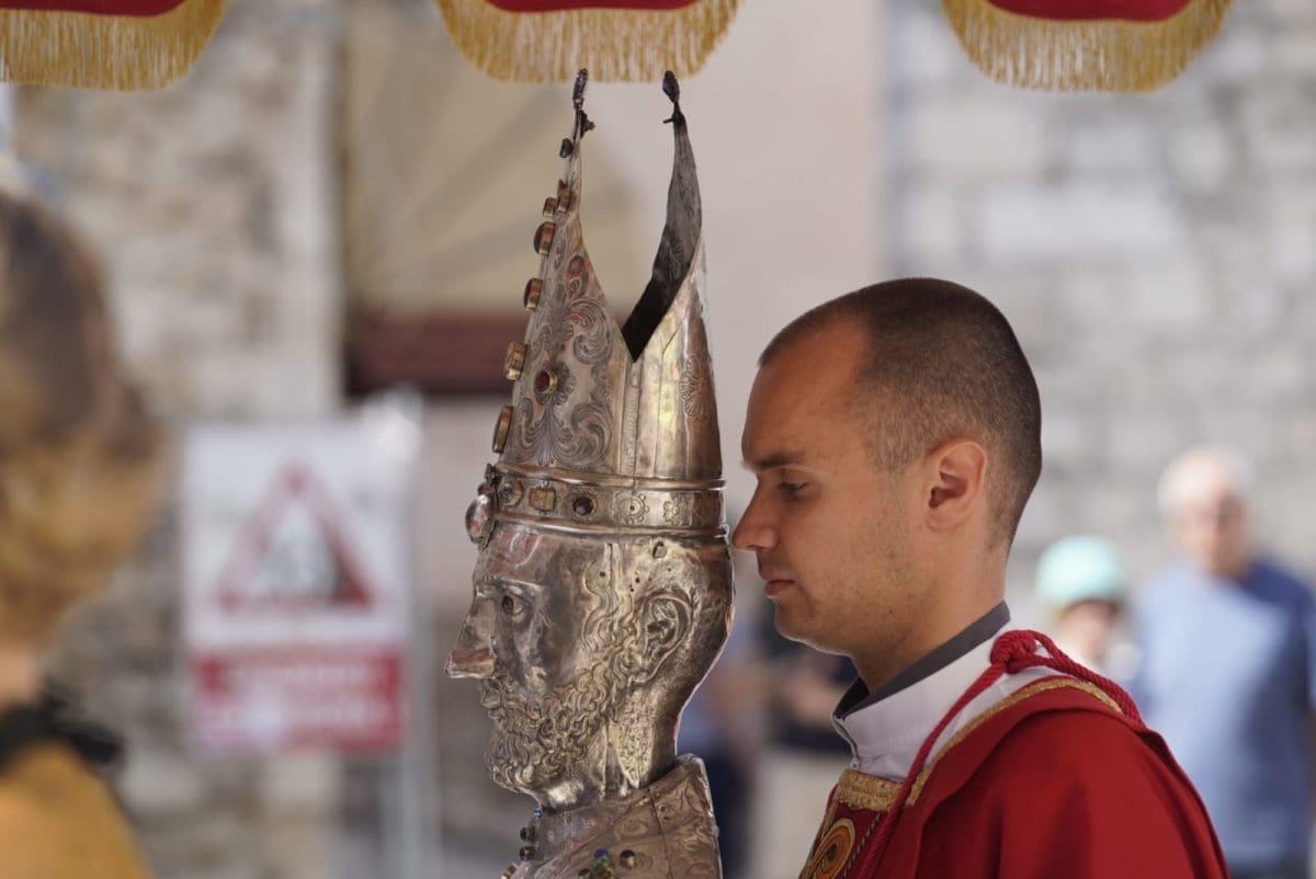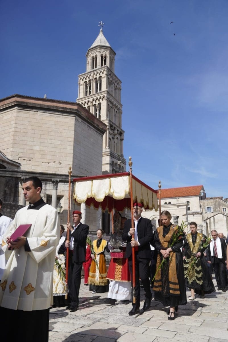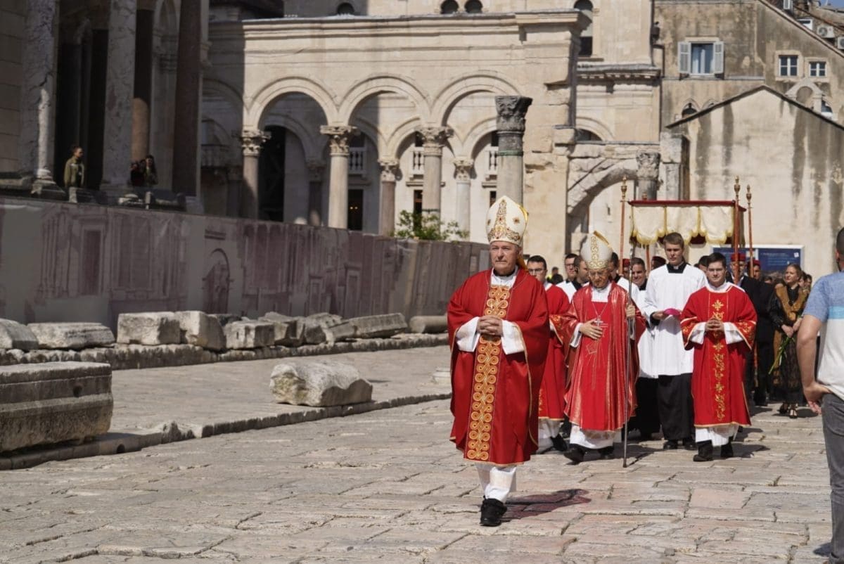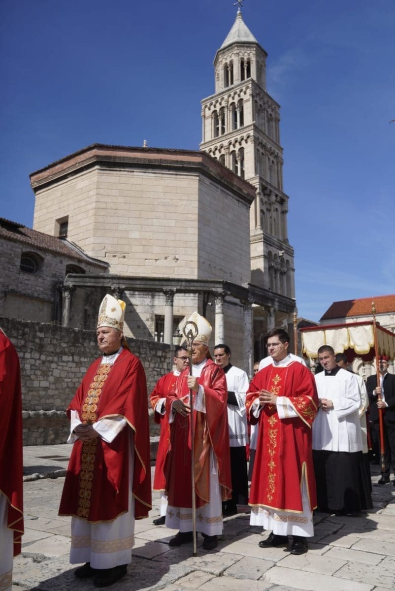 10:00 sati - Započeo je središnji dio proslave - tradicionalna procesija od katedrale sv. Dujma, preko Hrvojeve ulice do oltara na Rivi, gdje će svečano misno slavlje predvoditi Apostolski upravitelj Splitsko-makarske nadbiskupije mons. Želimir Puljić.