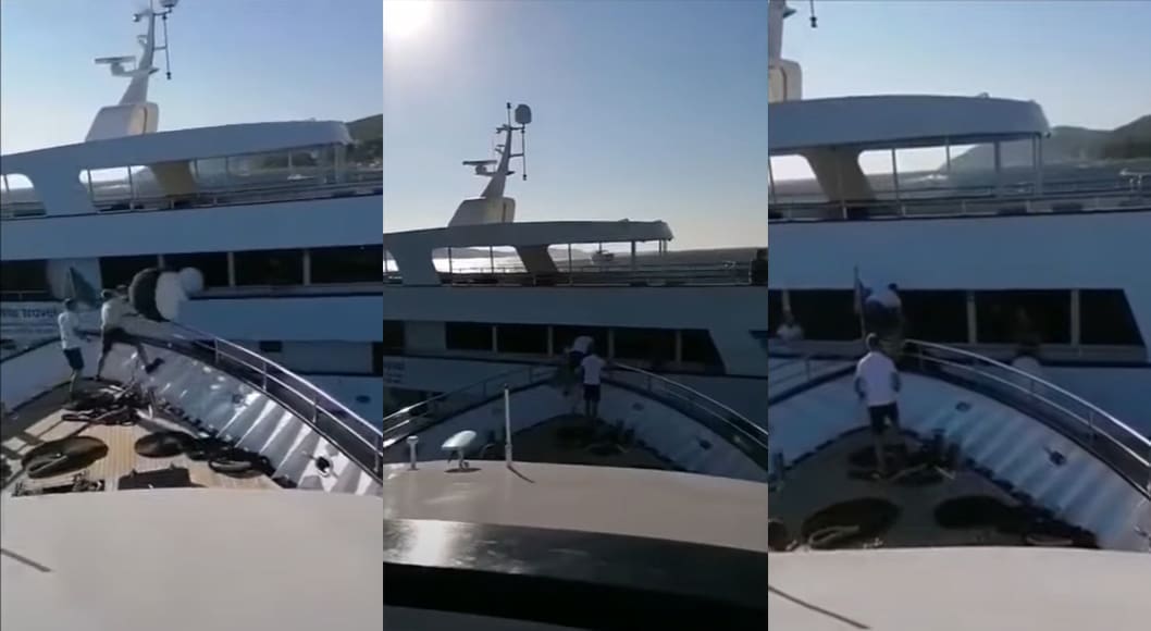 – U pokušaju da bokobranima spasi plovila od štete koju će kontakt brodova napraviti, jedan od mornara na provi skoro je i sam nastradao od zastave – objašnjava čitatelj događaj sa snimke na kojoj se vidi panika i kaos koji su nastali uslijed kontakta dvaju brodova.