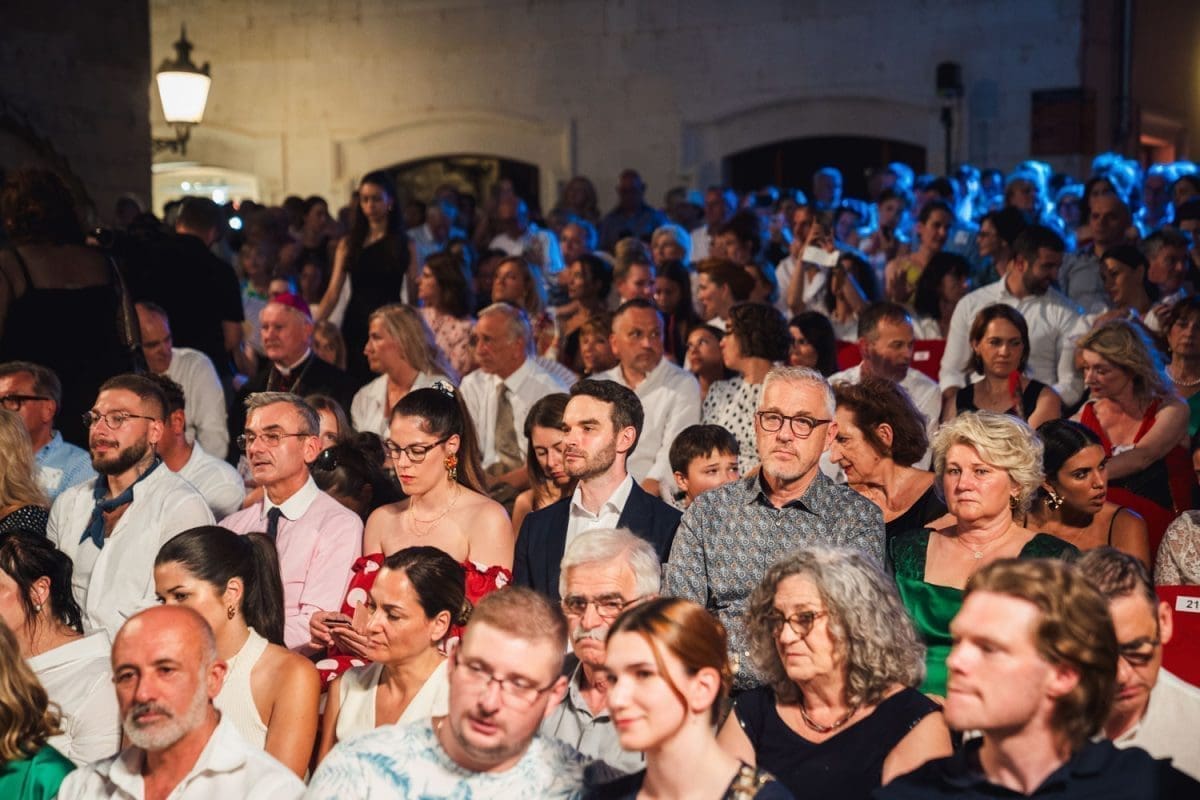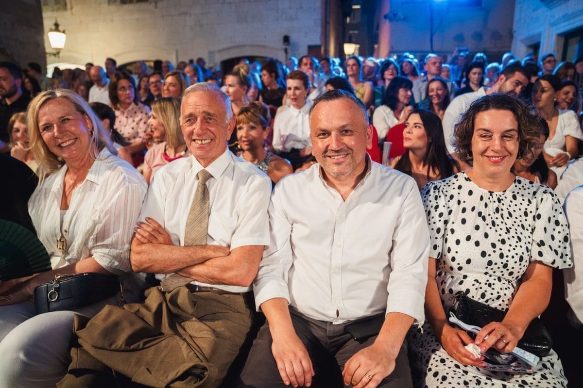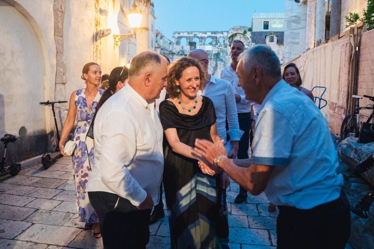 Uz splitskog gradonačelnika bila je supruga, saborska zastupnica Marijana Puljak. Šef splitskog HDZ-a Tomislav Šuta stigao je u društvu supruge Matilde, a između ova dva splitska politička "pola" nalazila se ministrica kulture Nina Obuljen Koržinek. Od poznatih političara tu su još bili župan Blaženko Boban, šef splitskog SDP-a Davor Matijević, a tko je još uspio pronaći mjesto na Peristilu, pogledajte u fotogaleriji našeg Igora Jakšića.