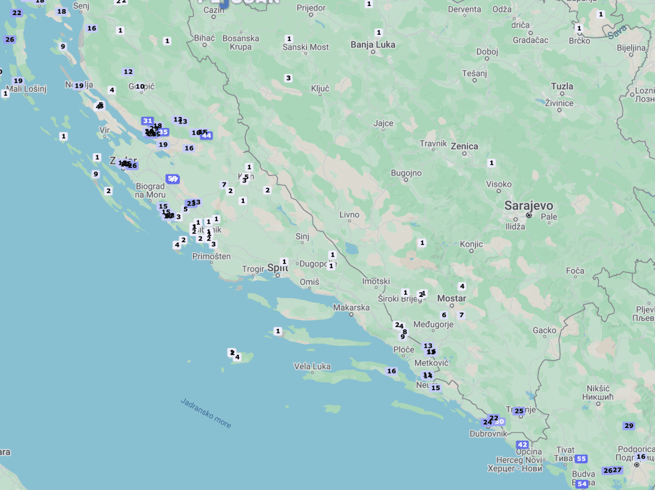 Zanimljiv je pogled na količine oborina u Dalmaciji tijekom četvrtka. Prema podacima mreže postaja Pljusak.com, Benkovac je do 23 sata primio 58 litara kiše po metru kvadratnome. Slijede Gruda 40, Malo Libinje 34, Veliko Rujno 30, Župa dubrovačka 29, Crno 25, Zadar 24, Starigrad Paklenica 23, Čista Velika 23 itd. S druge strane u najvećem dijelu srednje Dalmacije nije palo ni kapi.