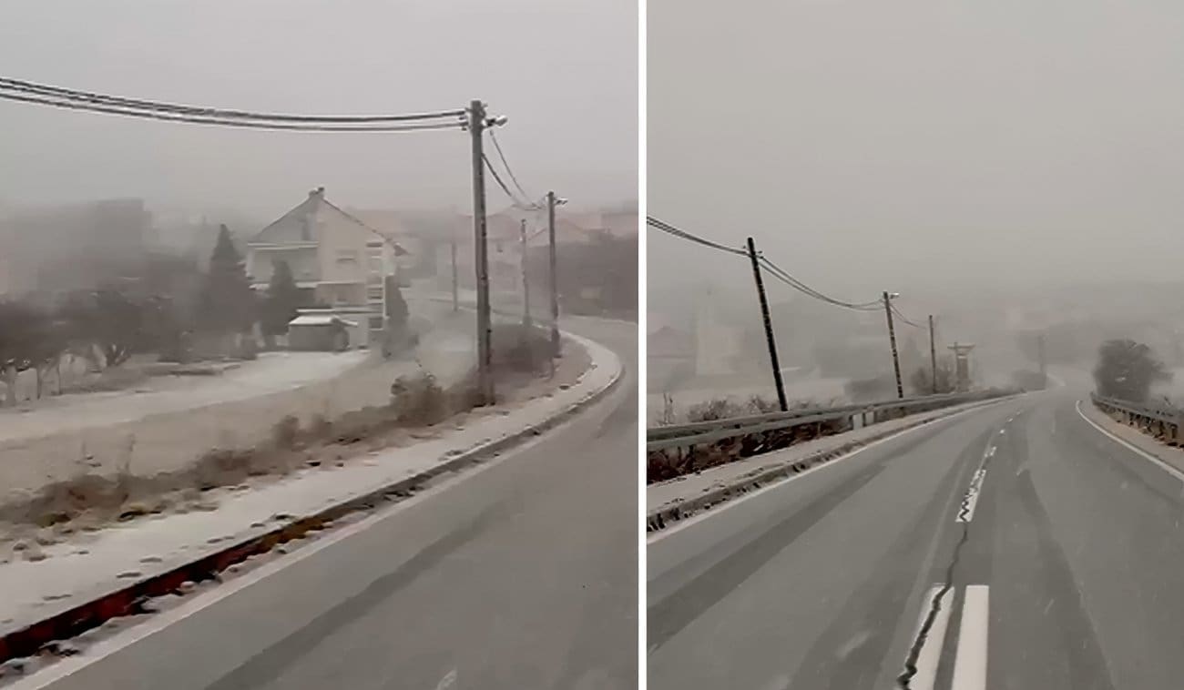 Snijeg pada na dijelu kninskog područja, na Dinari i Kamešnici gdje je temperatura zraka pana na -7 stupnjeva ispod nule. Snijeg pada i na južnoj strani tunela Sv. Rok.