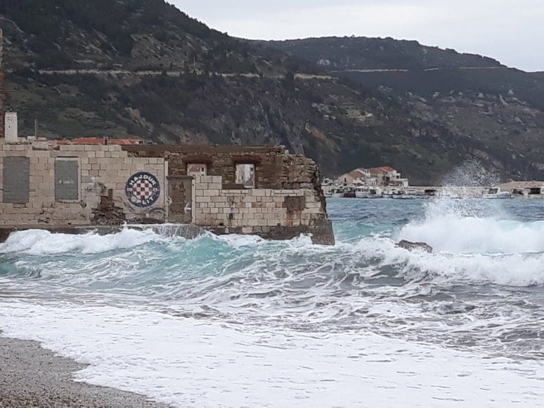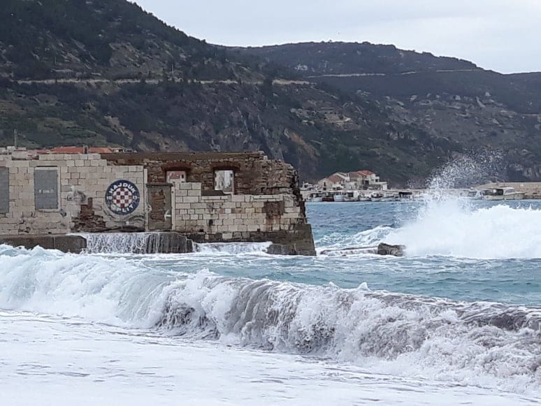 Na većem dijelu obale puše jak i vrlo jak jugozapadni vjetar i jugo, koji će poslijepodne okretati na tramontanu i buru. DHMZ upozorava da će najjači udari vjetra biti između 35 i 60 čvorova (65-110 km/h).