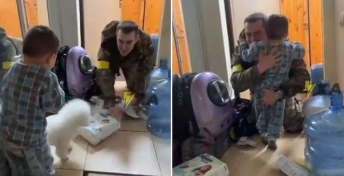 Vojnom osoblju u Ukrajini dopušteno je vratiti se nakratko s ratišta svojim najmilijima kako bi im donijeli osnovne potrepštine, a tata u videu obitelji je dostavio pelene prije nego što je pružio ruke prema sinu.