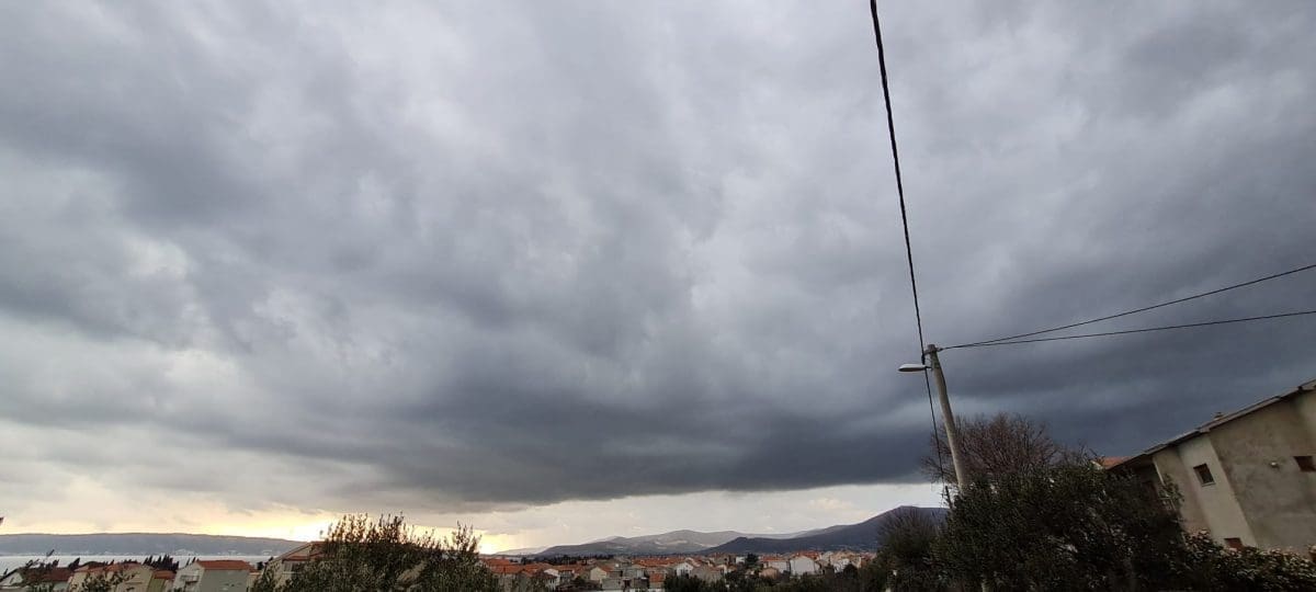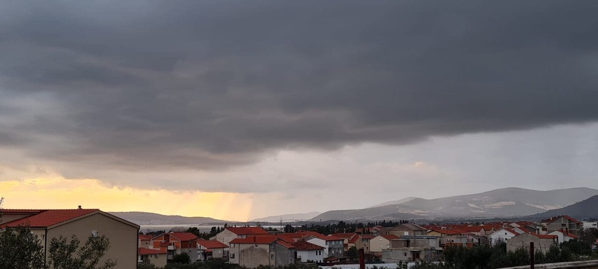 Tijekom dana bilo je dosta oblaka, a lokalno je padala kiša. Do 18 sati još nigdje nisu pale značajne količine oborina. Ipak, iza 17 sati jači pljusak zahvatio je šire kaštelansko područje, a prema podacima mreže postaja Pljusak.com, u samo 20 minuta palo je 13 litara kiše po kvadratnom metru.