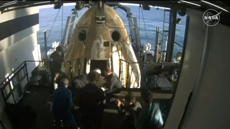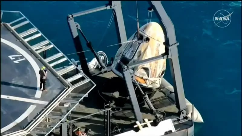 Nakon što su uspješno zaplivali u mirnom moru, članovi spasilačke ekipe brzo su se približili kapsuli brzim čamcima. Situaciju su dodatno uljepšali dupini koji su kružili oko svemirske letjelice, kao da su htjeli pozdraviti nove (ili stare) stanovnike planeta. Kapsula je potom pomoću užadi i dizalice podignuta na brod nazvan Megan, gdje je isprana slatkom vodom kako bi se uklonila sol. Ubrzo su otvorili bočni otvor kapsule, pružajući Butchu i Suni prvi pravi “gutljaj” svježeg zraka nakon skoro devet mjeseci u bestežinskom stanju, javlja BBC.