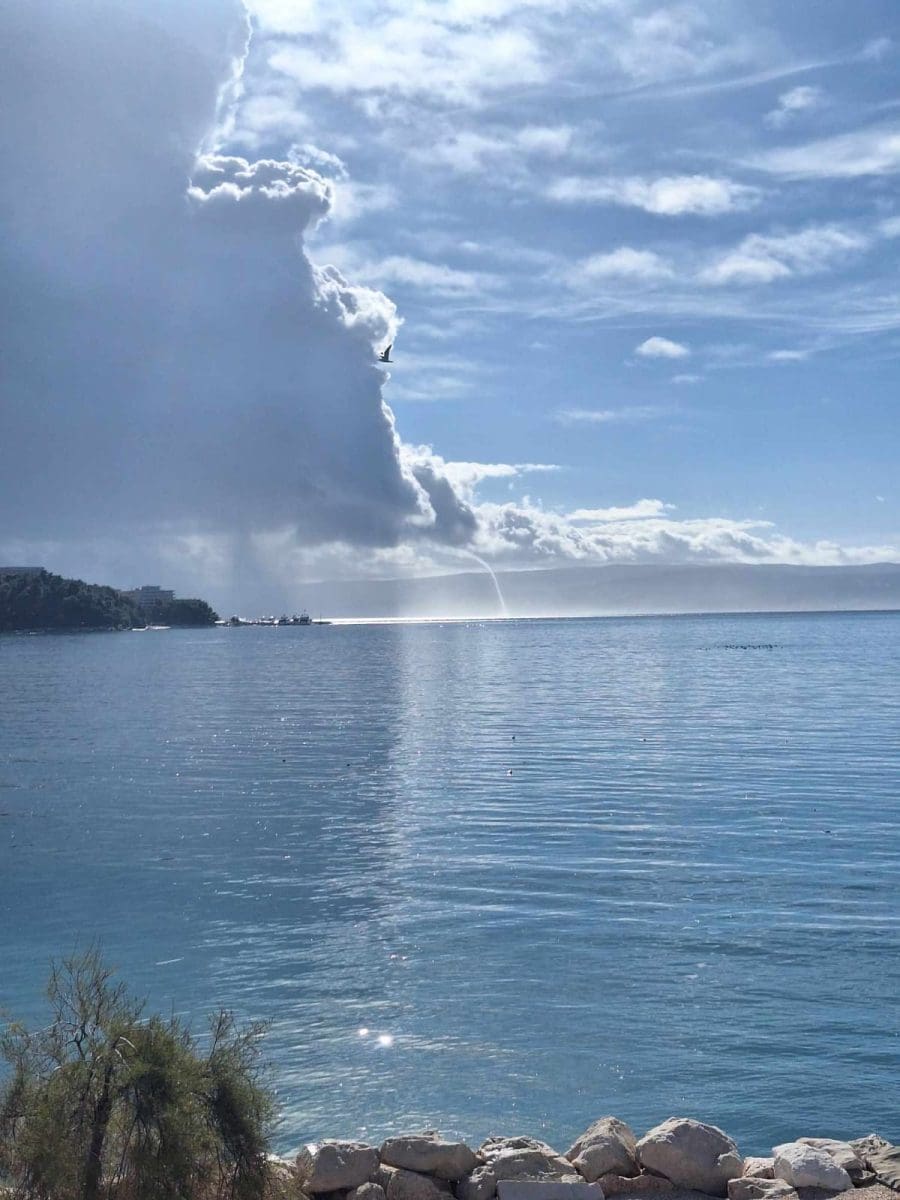 Negdje oko 11 sati se stvorila pijavica koja je trajala 20-ak sekundi. Zahvaljujući tome što nije trajala dugo, nije bilo ni štetnih posljedica. Stvorila se iz podnice oblaka prema moru.