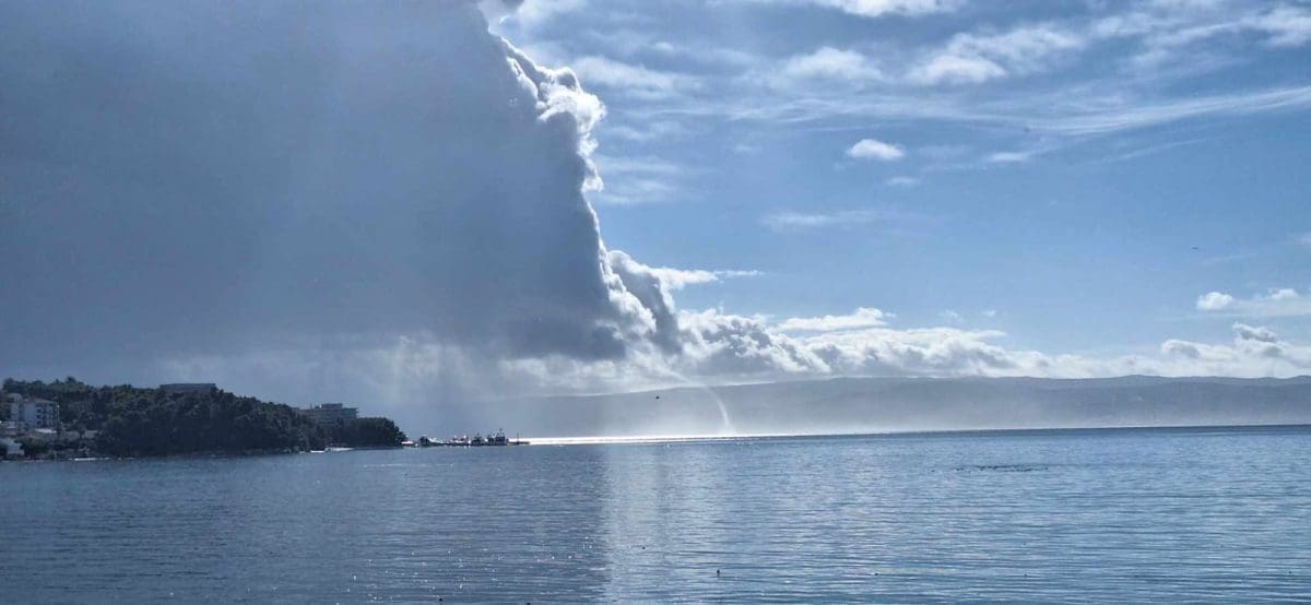 Nakon što je olujni grmljavinski oblak prešao preko Splita i donio obilne oborine te mjestimične bujice, nastavio se kretati prema jugoistoku preko Bračkog kanala, prema omiškom području.