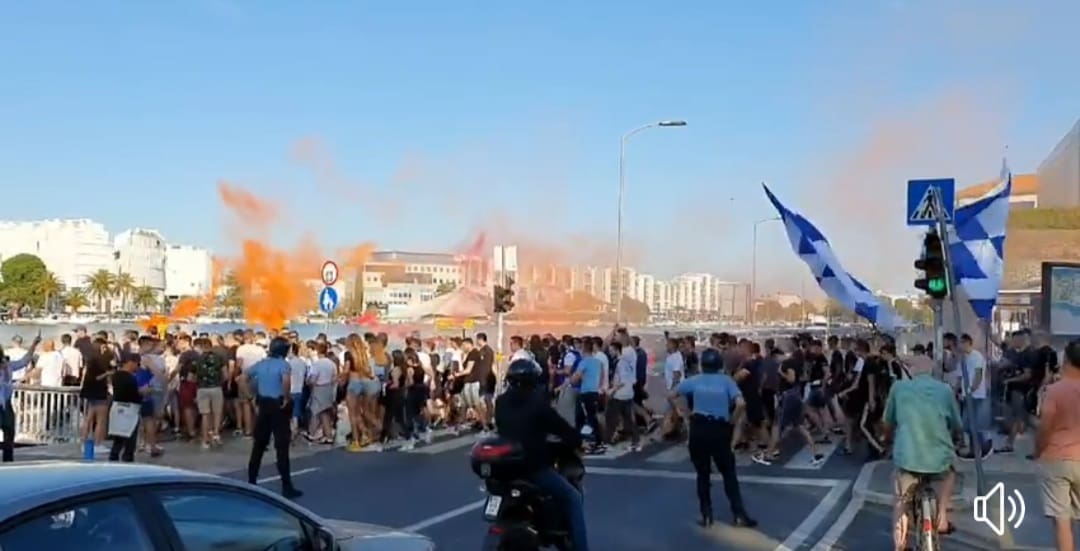 U centru Zadra, na Narodnom trgu navijači zadarskog kluba zagrijavaju atmosferu prije utakmice. Počeli su od 18.00 sati, gore dimne, bengalke, a zatim su se uputili prema Višnjiku.