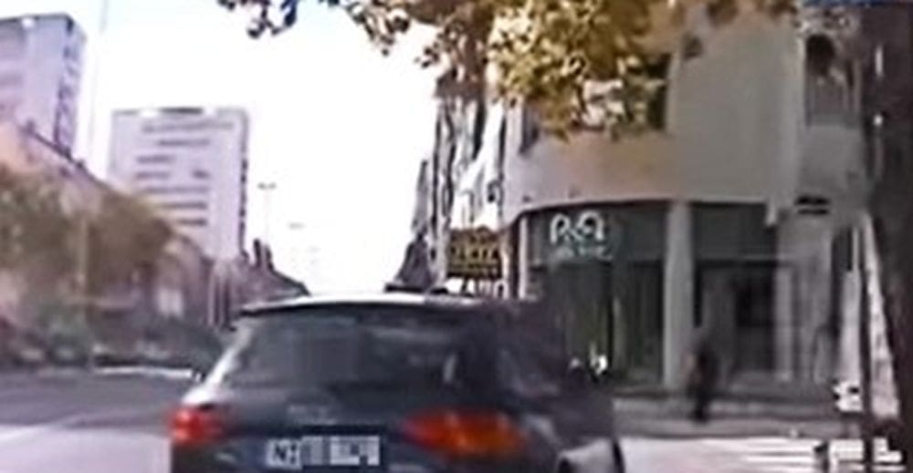 "Njemačka škola vožnje na balkanskoj zebri", stoji uz opis snimke na kojoj se vidi automobil njemačkih registarskih oznaka kako ne propušta pješake na zebri, već nastavlja voziti iako su neki od njih čak već i zagazili na zebru.