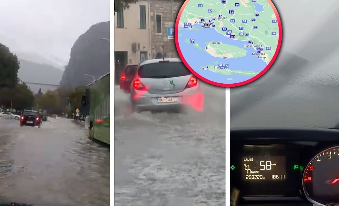 Obilne oborine u kratko vrijeme donijele su mjestimične bujice u Dalmaciji. Tako su se prolazno pod vodom našle prometnice na omiškom, makarskom i vrgoračkom području...
