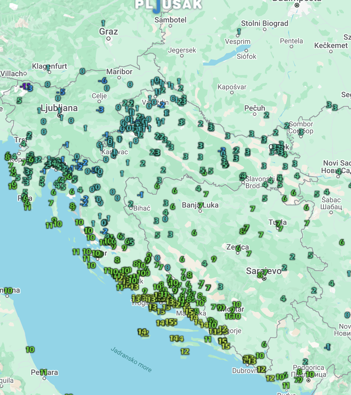 U Dalmaciji pada kiša, no u drugom dijelu dana i navečer kiša će u planinama prijeći u snijeg, a postoji manja mogućnost snijega u pograničnom području s BiH.
