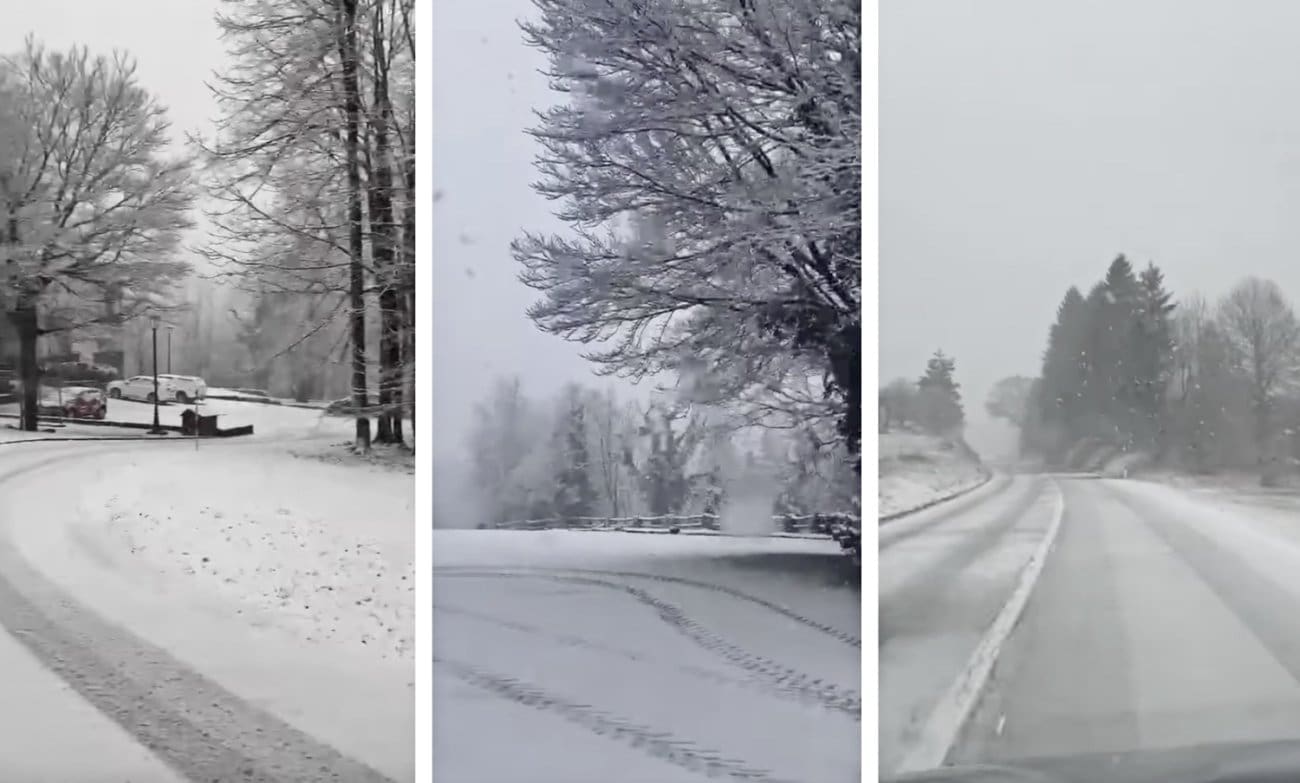 Na zapada zemlje je krenuo pad temperature zraka koji je najizraženiji u Lici i Gorskom kotaru. Tamo je kiša prešla u snijeg, a u mnogim predjelima pada gust snijeg uz stvaranje snježnog pokrivača. Zbog snježnih oborina tamo su proglašeni zimski uvjeti. Čitatelj iz Splita nam šalje trenutnu situaciju kod Plitvica.