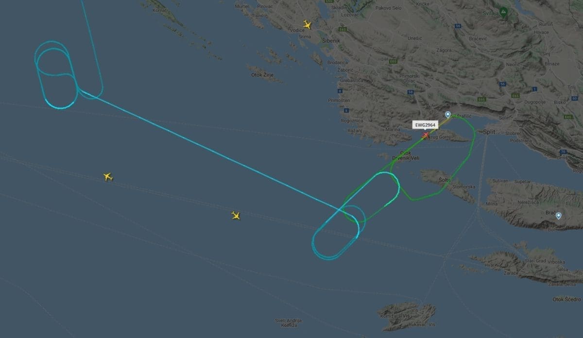 Inače, zrakoplov je poletio iz Stuttgarta u 18:57, a u tijeku je novi pokušaj slijetanja.