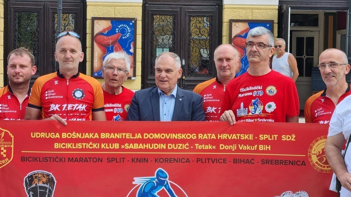 Župan Splitsko-dalmatinske županije Blaženko Boban u utorak se u Splitu susreo sa sudionicima biciklisitičkoga maratona "Vukovar i Srebrenica da se ne zaboravi" koji se vozi na relaciji Split - Knin - Plitvice - Bihać – Srebrenica.