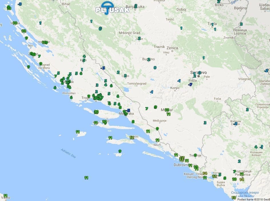 Hladna fronta tijekom srijede prolazi preko Dalmacije. Njen prolazak mjestimice je popraćen jačim grmljavinskim nevremenom. Kako smo već javili, dijelove Dalmacije zabijelila je tuča, a na moru pored Splita pojavila se i pijavica.