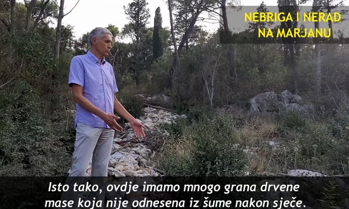 - Posjećeno je mnogo stabala kao što vidite, a između toga i 7,500 kubika drvne mase koja nije bila označena. Isto tako, uništeno je puno suhozidova koji bi trebali biti obnovljeni što je po ugovoru trebala napraviti tvrtka Matima, ali kao što vidimo nitko ništa ne radi. Također, vidimo mnogo grana drvne mase koja je nije odnesena iz šume nakon sječe. Što radi Javna ustanova Park šuma Marjan?
