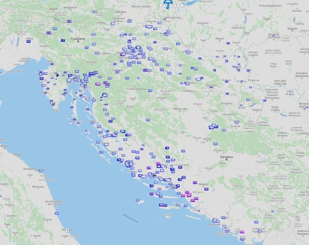 Zanimljivo, od aktualne ciklone najmanje je palo u Splitu, od 25 do 50 litara po kvadratnom metru.