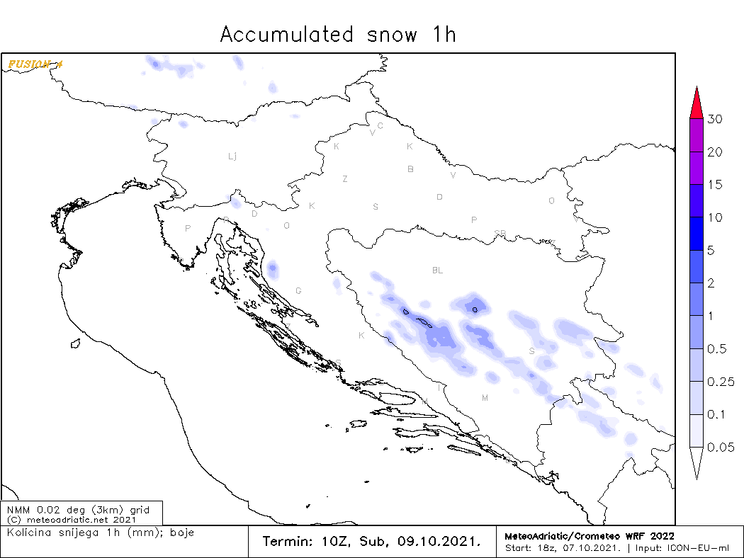 Subota donosi umjereno do znatno oblačno vrijeme, ali većinu vremena suho. Ipak, uz prolazno više oblaka ponegdje će pasti vrlo malo kiše, a po vrhovima Dinare i Kamešnice moguć je slab snijeg. Puhat će umjerena do pojačana bura, podno Velebita i dalje su mogući orkanski udari. Jutarnje i noćne temperature u padu, najviše dnevne većinom od 13 do 20°C.
